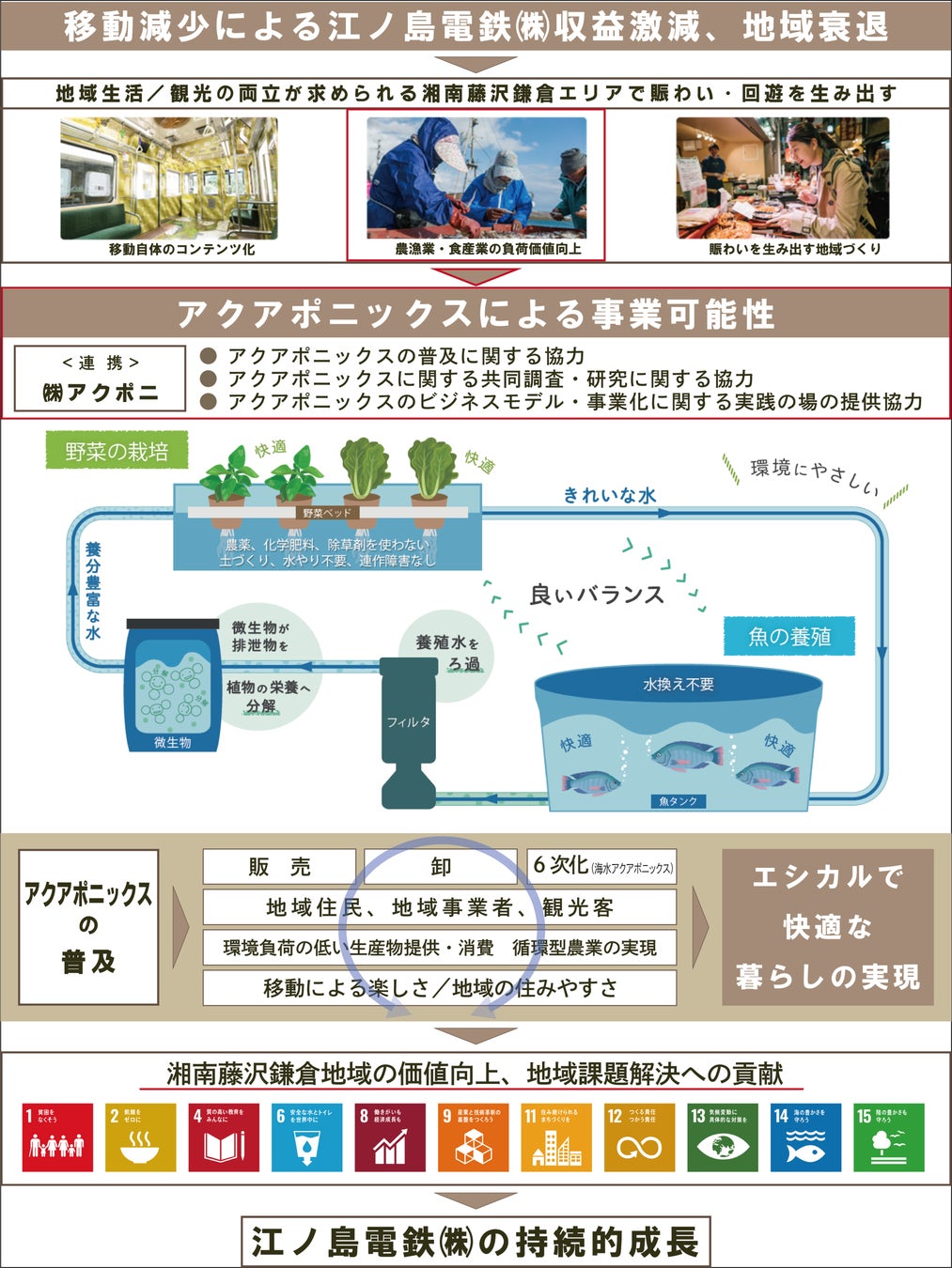 コロナ禍で当社も地域も打撃を受けましたが、SDGsの達成に寄与できるアクアポニックスに対して新たな可能性を感じています。既に藤沢市で農場を展開している株式会社アクポニと連携して事業化を目指し、当社沿線である湘南藤沢鎌倉の地域価値の向上を目指して取り組んでまいります。