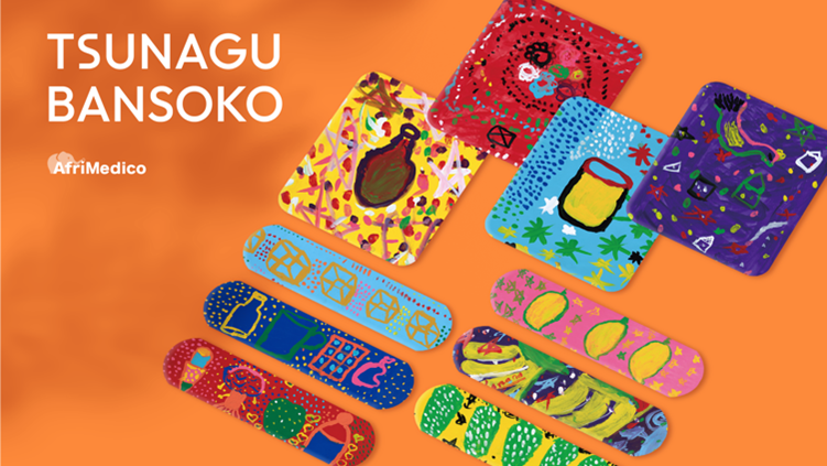 第一弾となる、TSUNAGUブランドシリーズとして、「アフリカと日本をつなぐ絆創膏(BANSOKO)」を立ち上げます。実際に置き薬を届けるアフリカ現地の子どもたちを対象にワークショップを実施。日本のアーティストであるミヤザキケンスケさんとコラボレーションして、「けがや病気になった時に元気にしてくれるもの」というテーマでアートを描いてもらいました。そのアートを元にして絆創膏のプロダクトデザインを展開。アフリカの学びを得られるBookletなども同梱され、6月1日より、CAMPFIREサイト上で販売が開始されます。