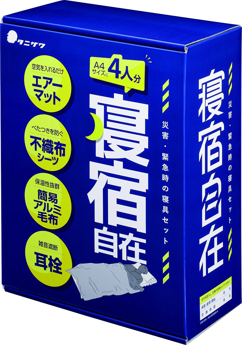 「寝宿自在」は、災害時に帰宅困難者がオフィスや避難所で宿泊する際に使用するための寝具セットです。