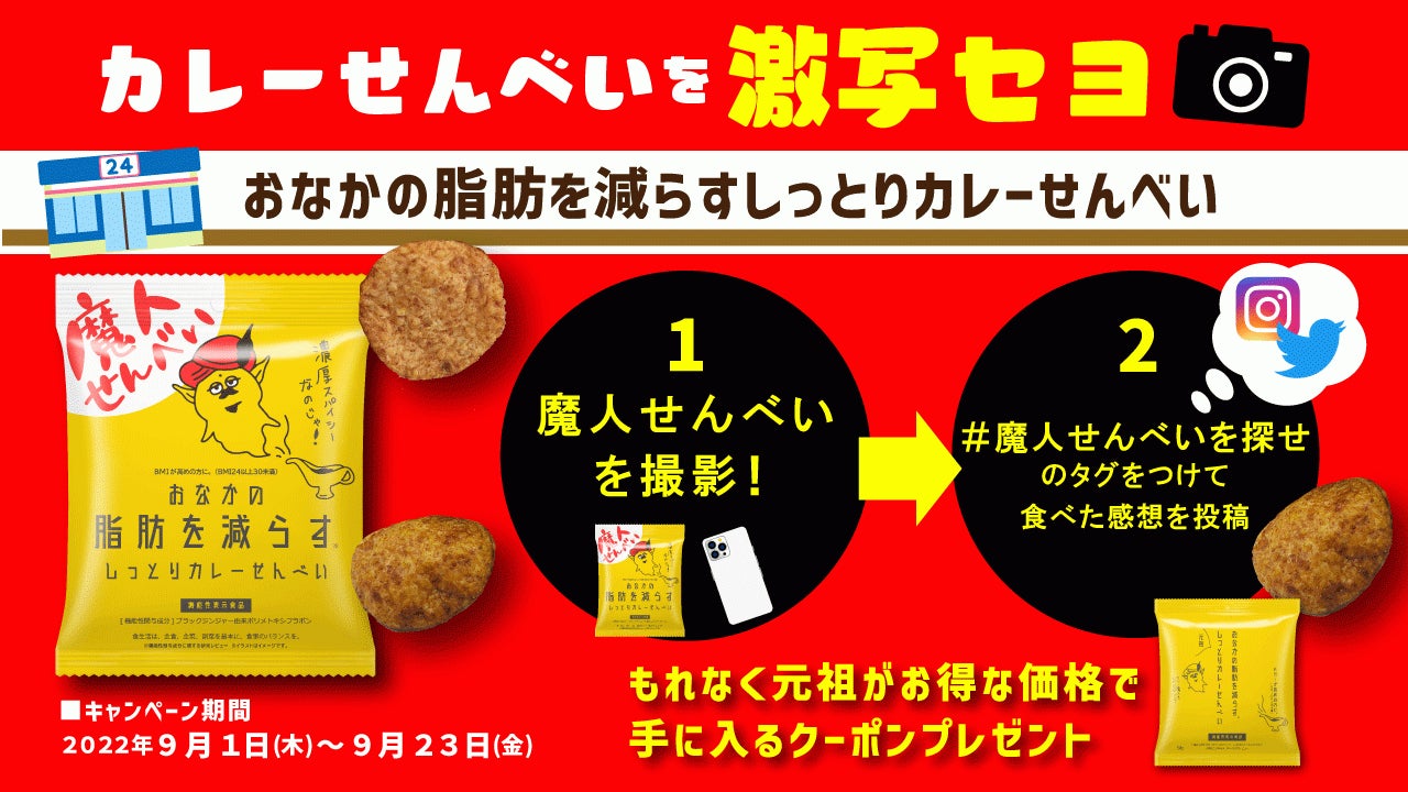 おなかの脂肪を減らすしっとりカレーせんべい。SNS上で『魔人せんべいを激撮セヨ』キャンペーン開始。