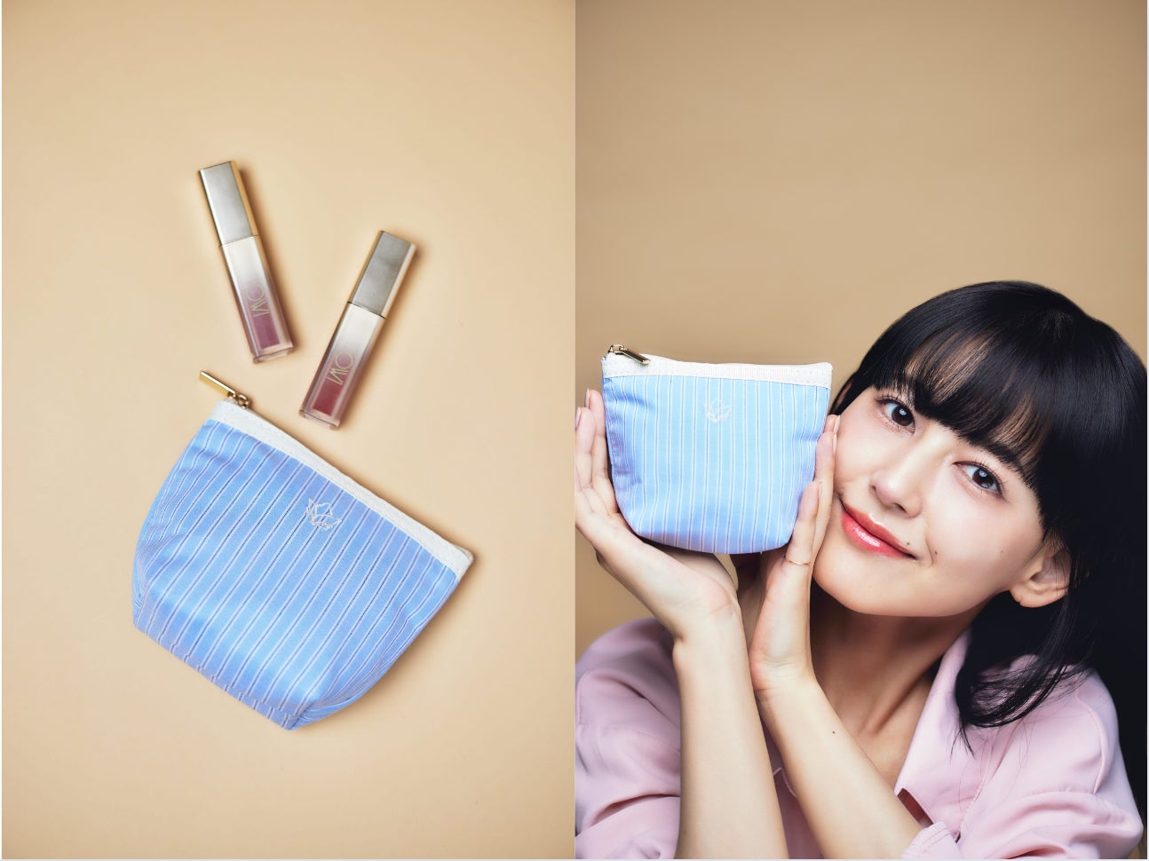 菅沼ゆりさんデザインのオリジナルメイクポーチとTOWIのシアーリップティントの中で人気カラー2色がセットになった数量限定ポーチセットです。