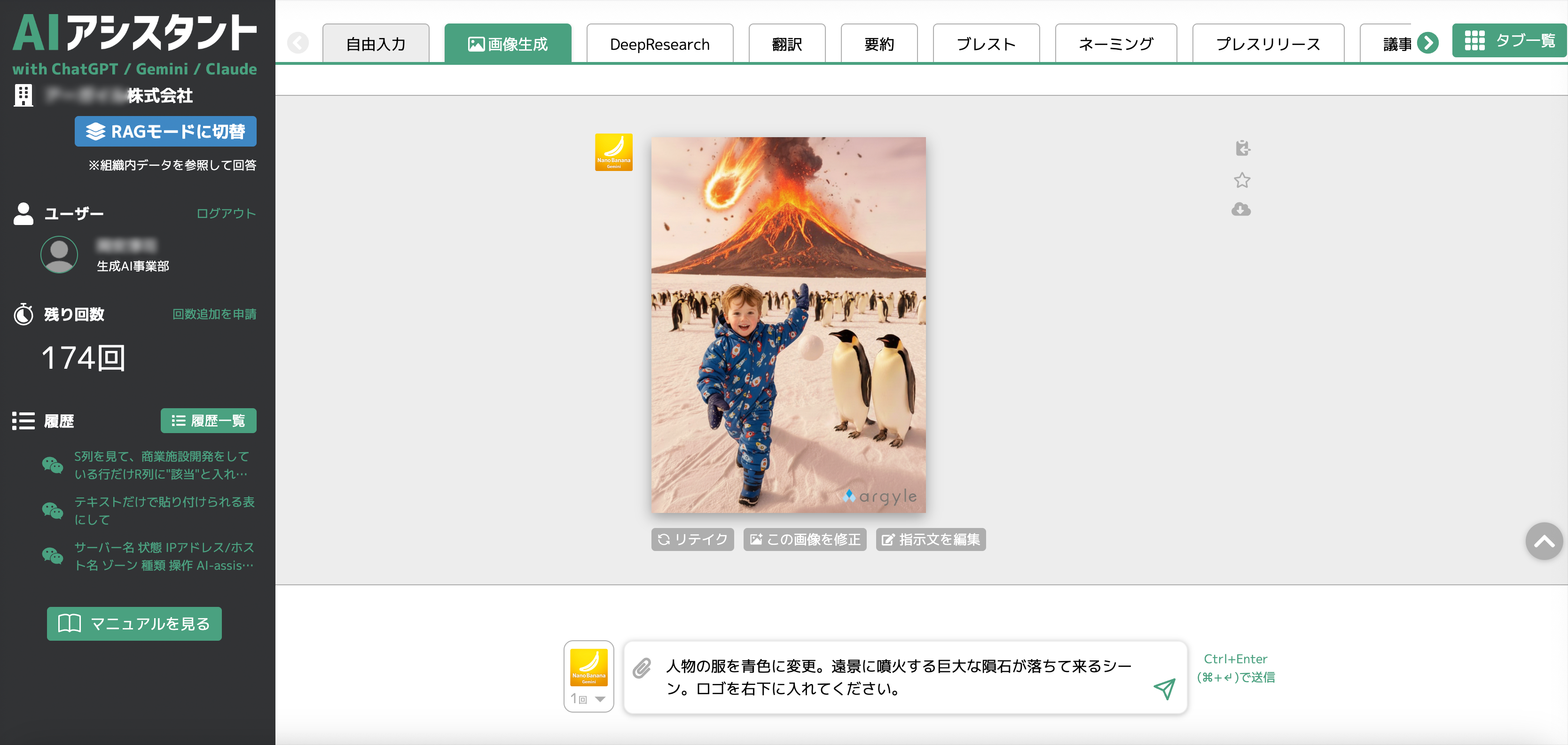 生成AI法人導入パッケージ「アーガイル AIアシスタント」に新機能 ― Nano BananaでのAI画像生成、最新GPT-5 Pro、Claude 4.5、DeepResearchなどに対応