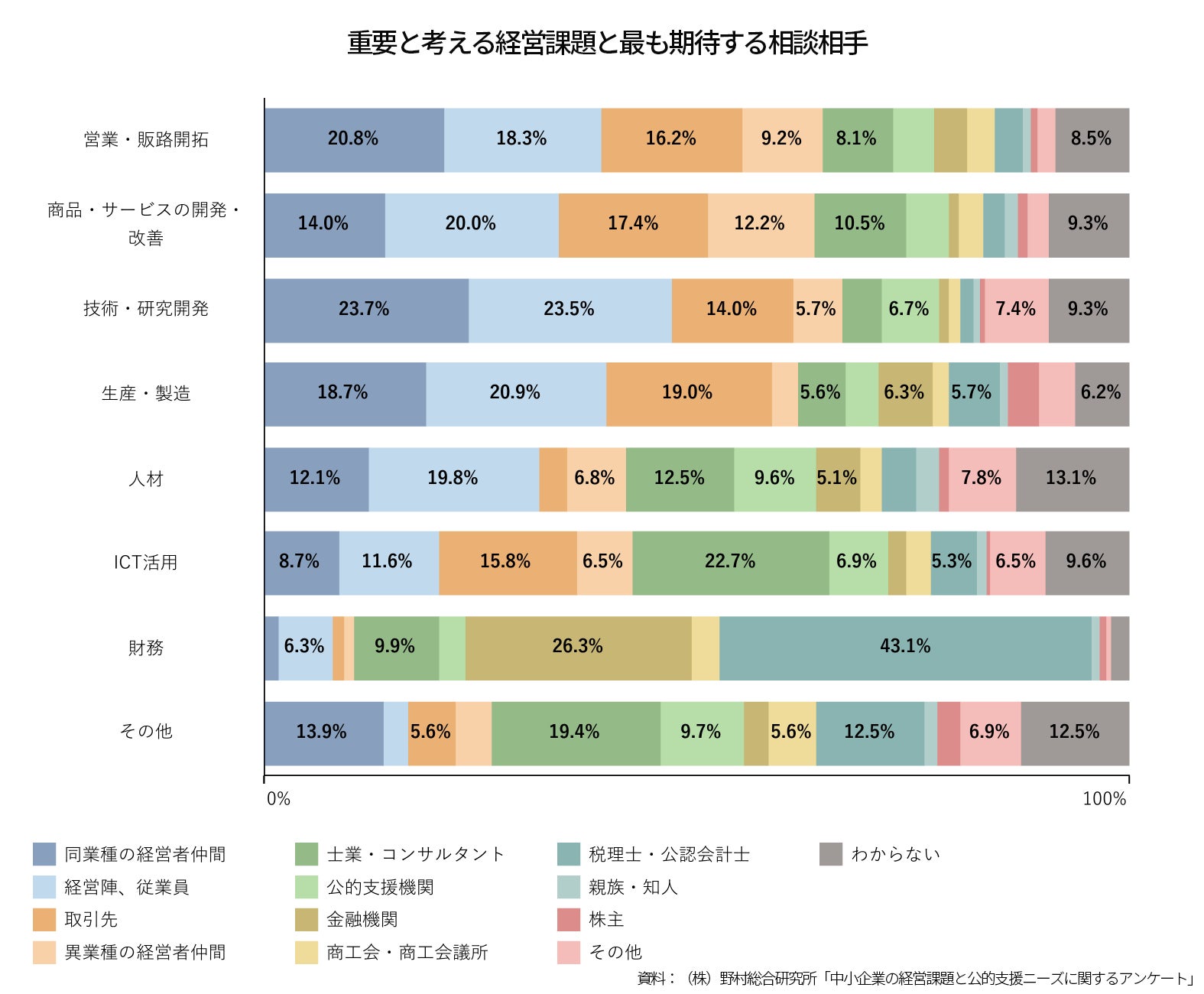 中小企業の重要な経営課題の相談相手として「同業種の経営者仲間」、「異業種の経営者仲間」に期待している企業の割合が高くなっていることからも、本機能が経営者の課題解決のサポートになることを目指します。