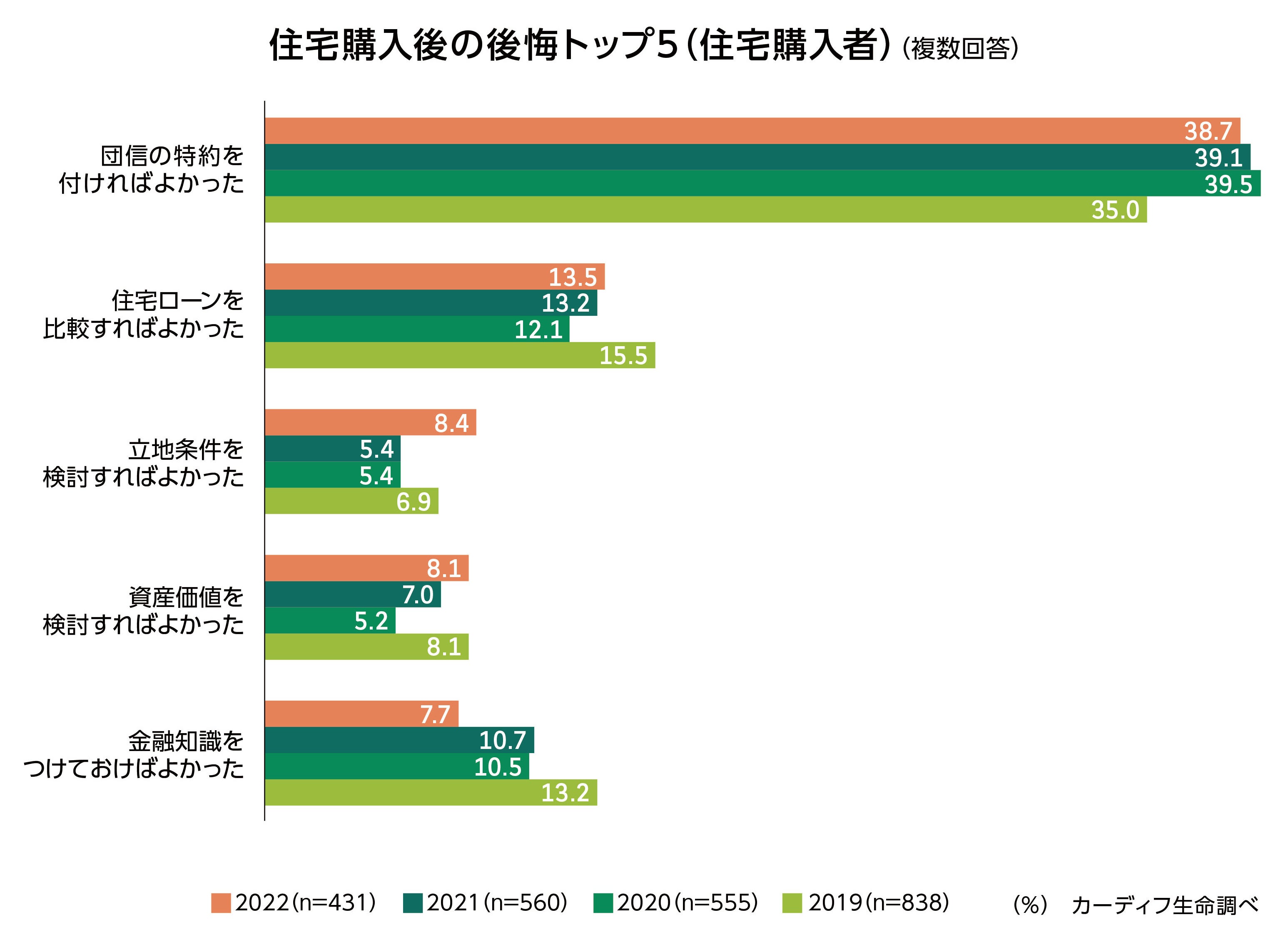 - 住宅購入後の最大の後悔は、今年も「団信の特約※を付けておけばよかった」