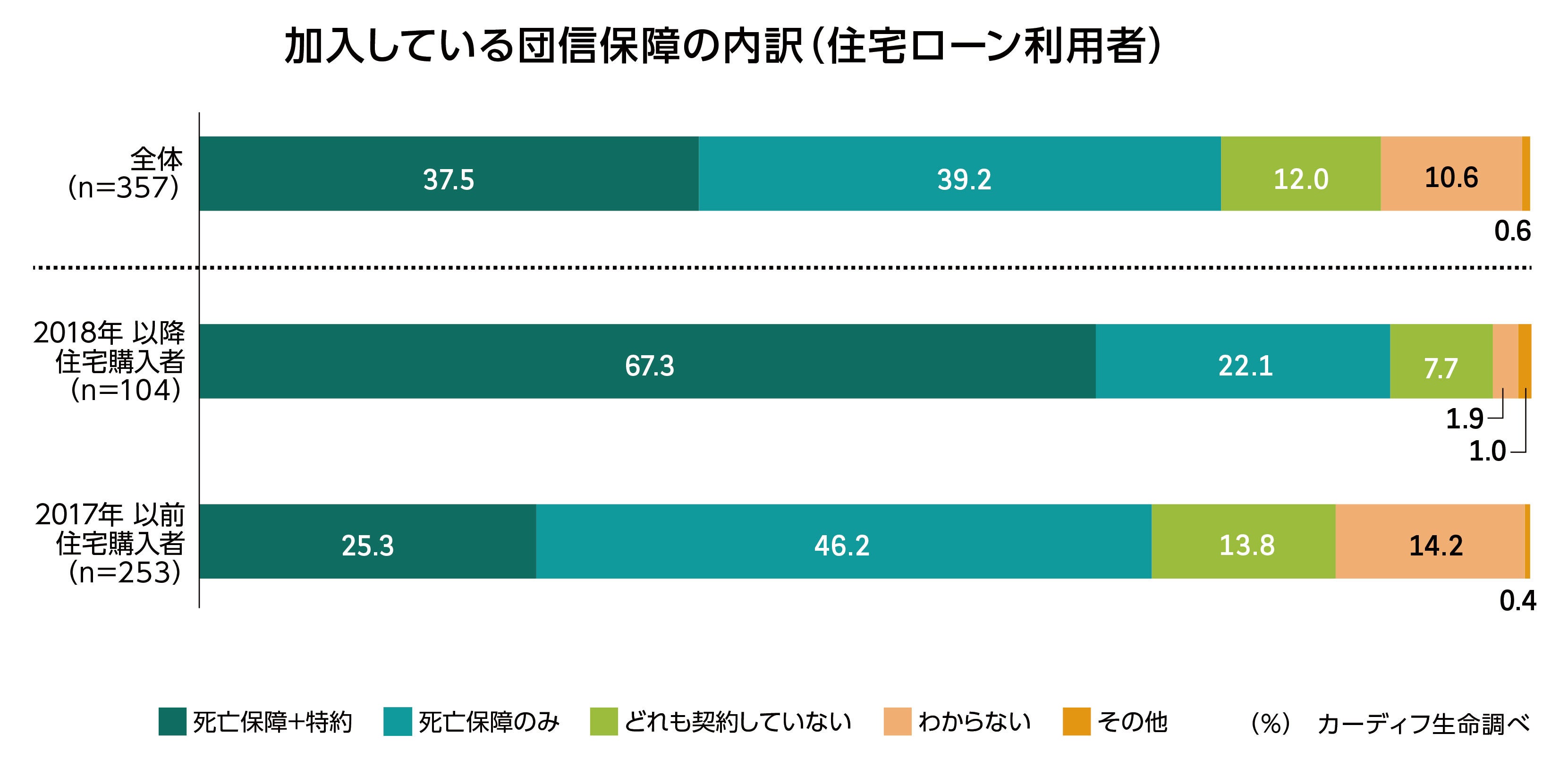 - 団信の特約の加入率は約4割。30代の住宅ローン利用者では6割以上が加入