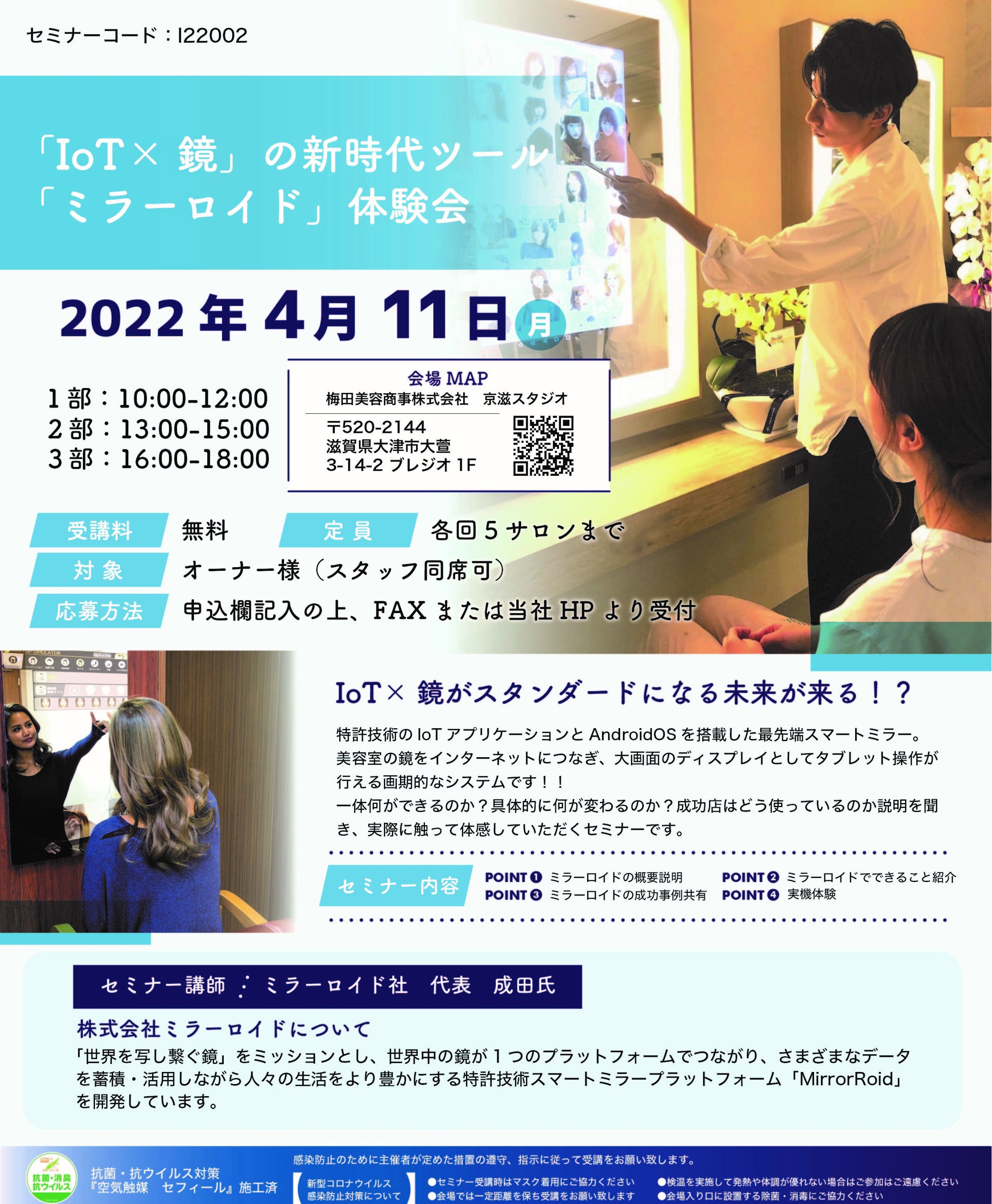 株式会社LEDEALでは、美容師様がこのミラーロイドのデモ機を気軽に体験できるように、大阪スタジオと京滋スタジオの2拠点にデモ機を導入しました。