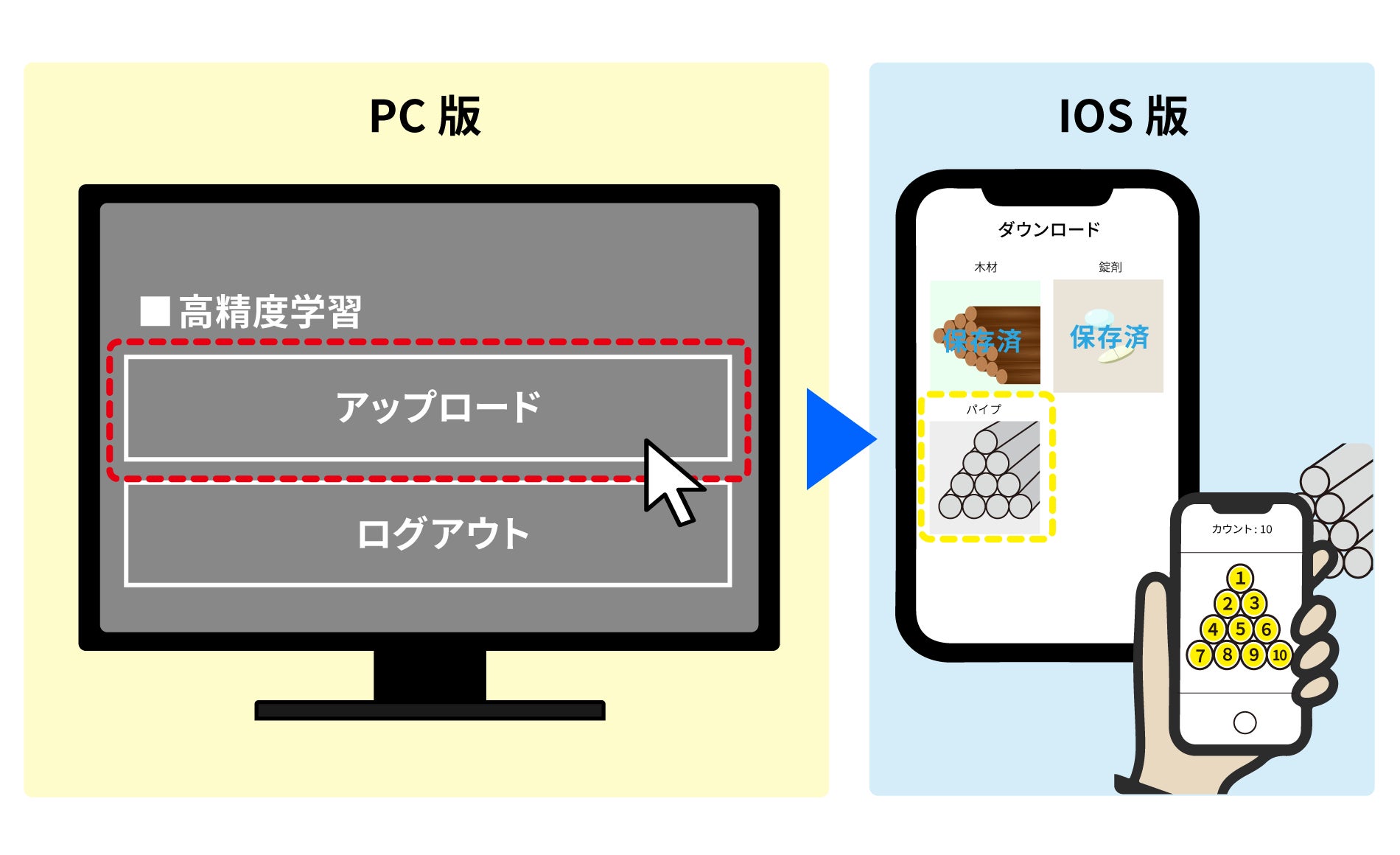 ▼PC版で作成した学習モデルをIOS版でダウンロードが可能。