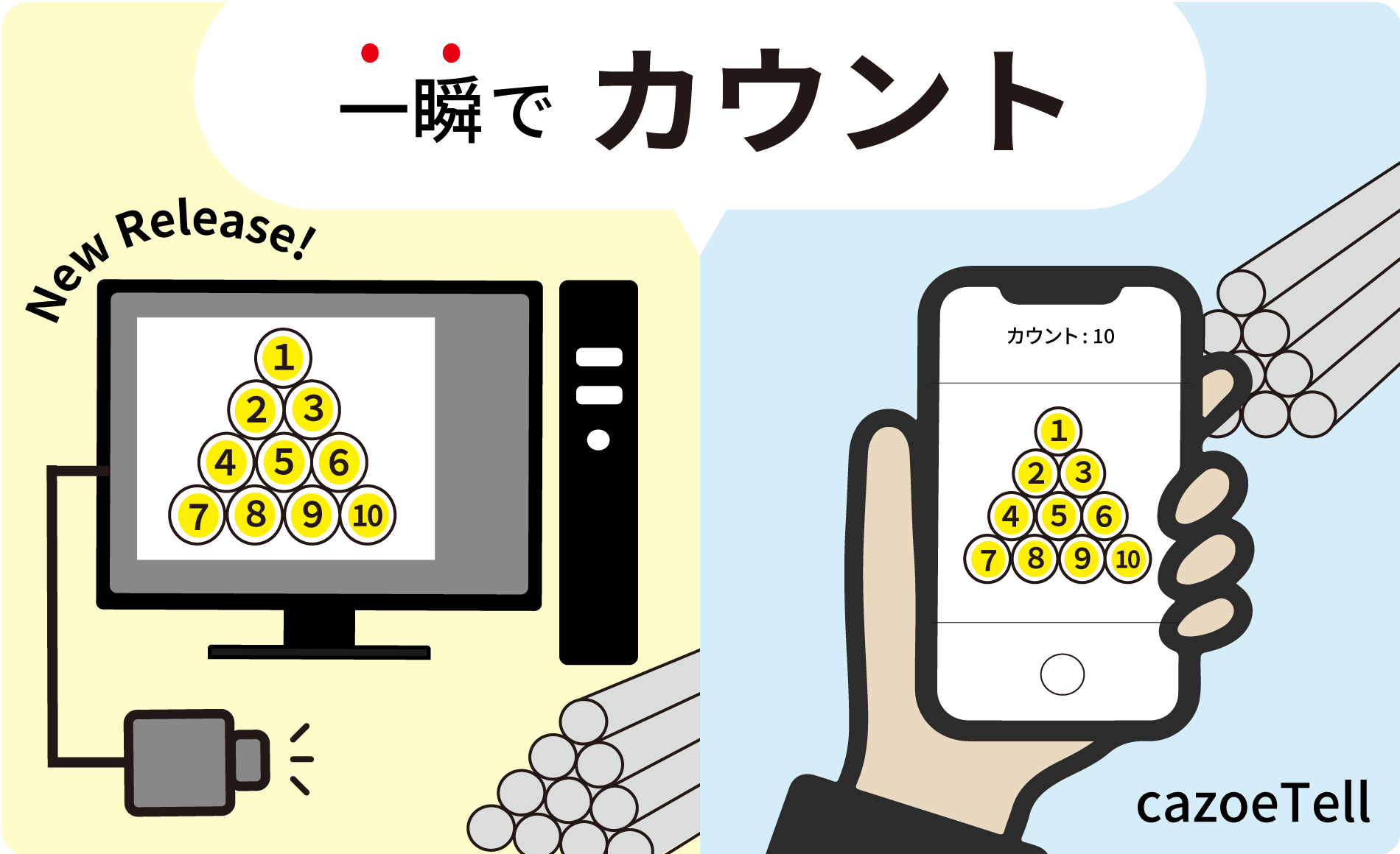 株式会社スカイロジック(本社:浜松市北区、代表:南野真吾)は、AIによる本数カウントアプリ「cazoeTell」のPC版を、本日2022年11月21日にリリースしました。「cazoeTell」は数えたい物(棒や錠剤など)をスマホやカメラで撮影し、撮影した写真の中から対象物を約1秒でカウントして結果を表示します。AIによるカウントで数え間違いや手間を削減します。PC版のリリースにより、さらに様々な状況に対応ができるようになりました。
