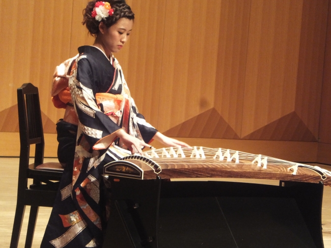 箏演奏家・原茉里(はらまり)さんによる、日本の伝統和楽器 箏で「さくらさくら」「六段の調べ」「見上げてごらん夜の星を」など7曲を演奏。関西の某テレビ番組でも披露された「残酷な天使のテーゼ」など、お琴では珍しい曲も楽しめます。原茉里さんは今春、大阪音楽大学邦楽専攻を首席で卒業。在学中には学内の選抜コンサートに多数出演いたしました。韓国や中国での演奏など、海外にも活躍の場を広げています。