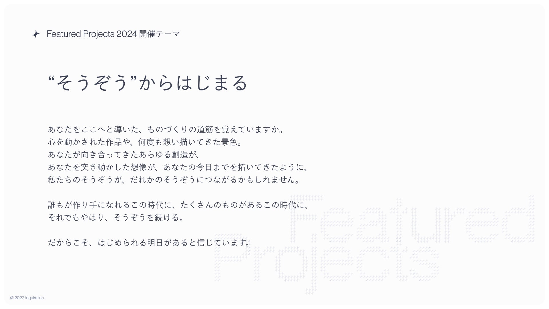開催レポート: https://inquire.co.jp/explore/featured-projects-2023-report