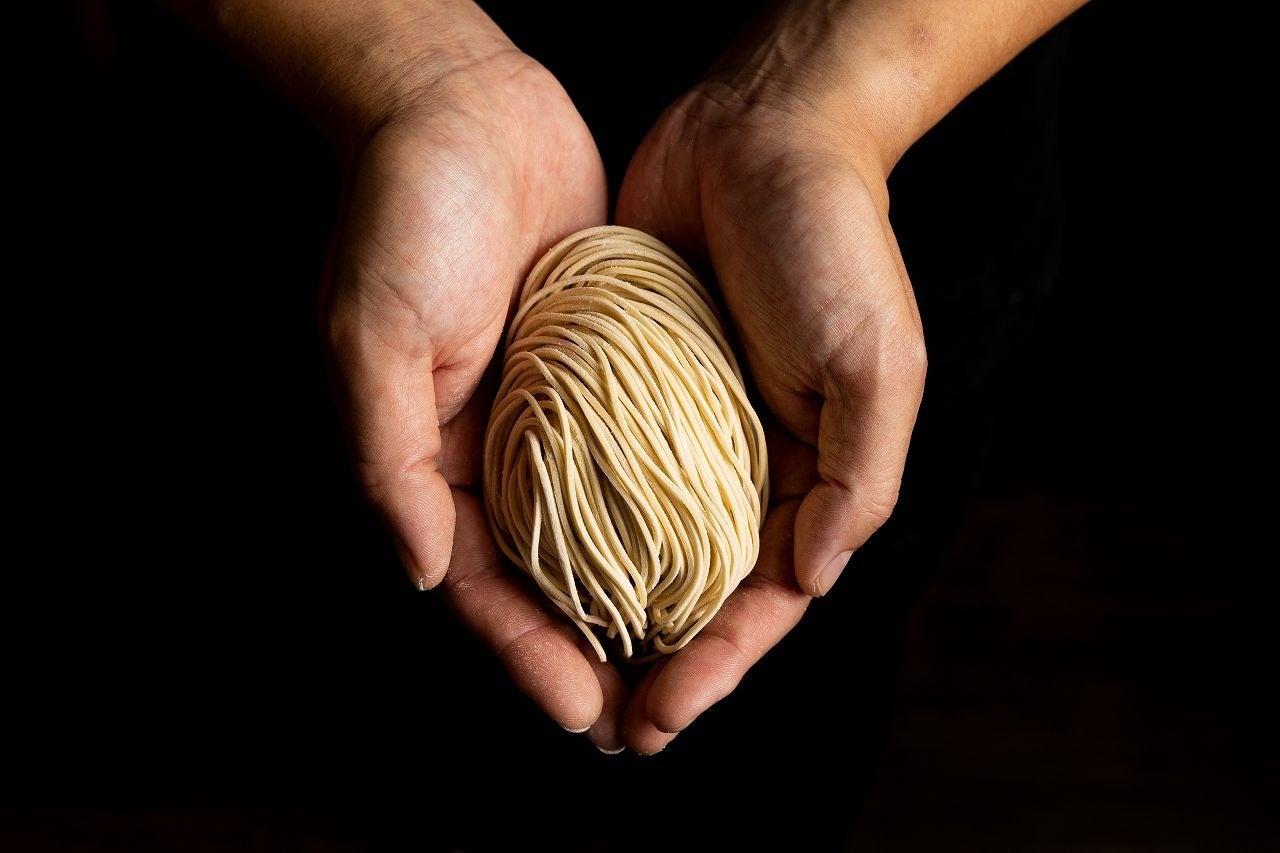 断面が長方形になっており、もっちりした中にも歯応えを楽しめる麺。