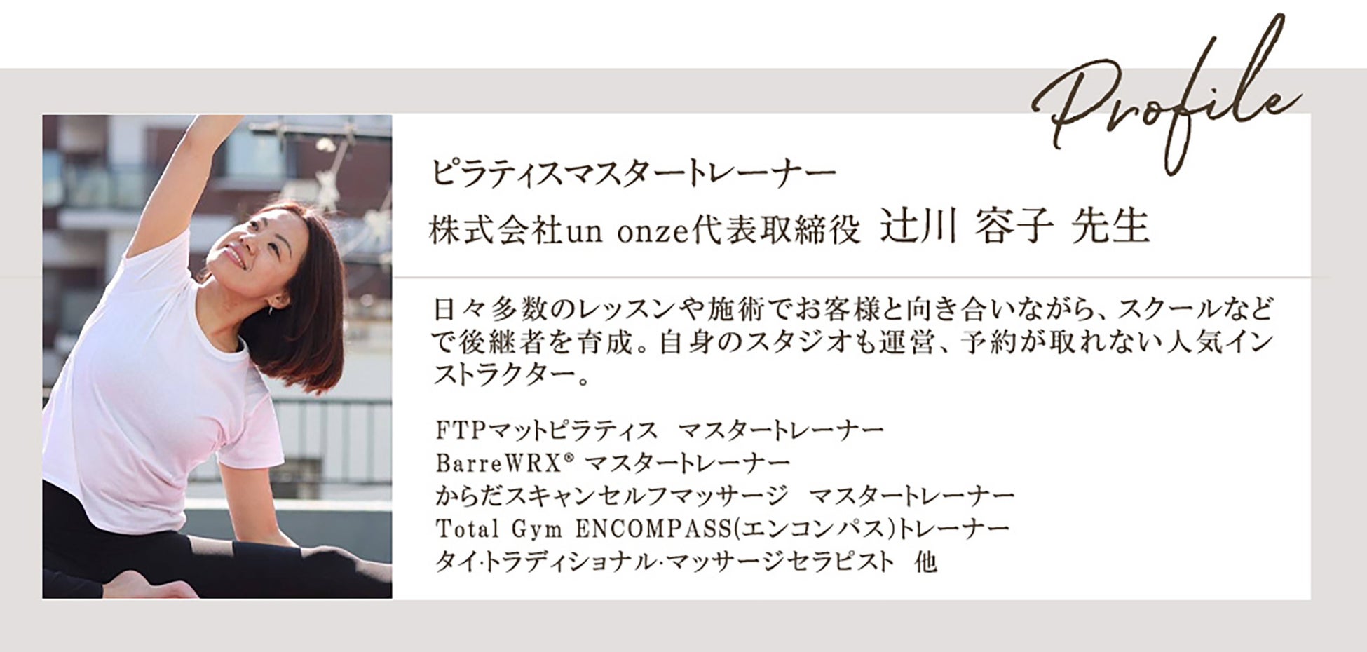 SYNCAスタッフ、各分野のプロ(例:ピラティスマスタートレーナー辻川容子先生)