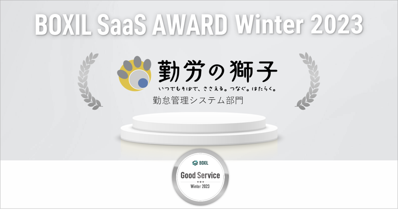クラウド勤怠管理「勤労の獅子」、「BOXIL SaaS AWARD Winter 2023」勤怠管理システム部門で「Good Service」に選出