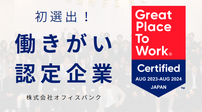初選出!株式会社オフィスバンク2023年版【働きがい認定企業】に選出されました