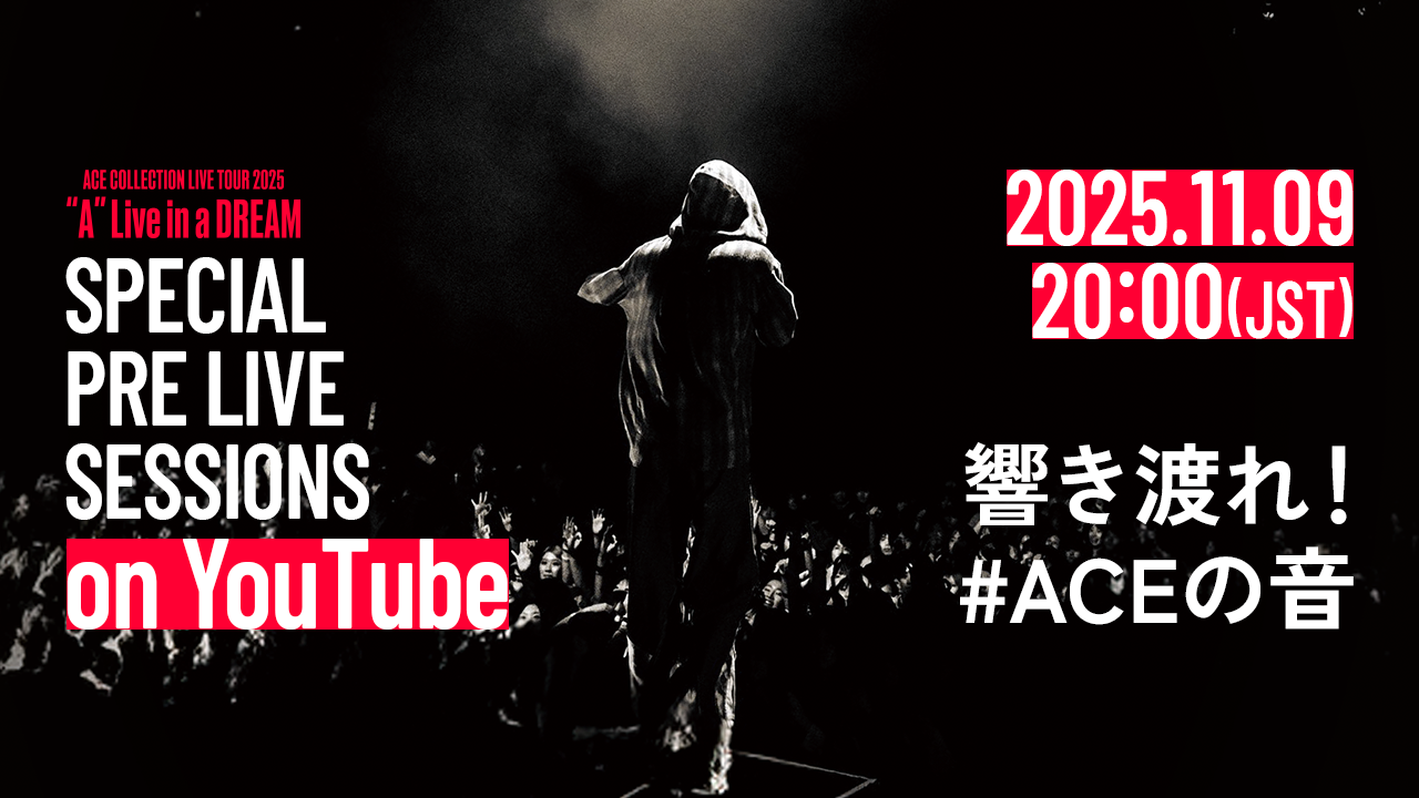 新作マッシュアップやオリジナル楽曲を中心に、ライブ前夜の特別ステージをお届けします。ハッシュタグ #ACEの音 をつけて拡散し、全国ツアーを一緒に盛り上げよう!
