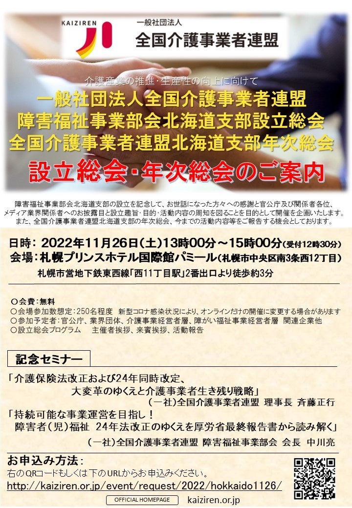 同時開催:一般社団法人全国介護事業者連盟 北海道支部 年次総会