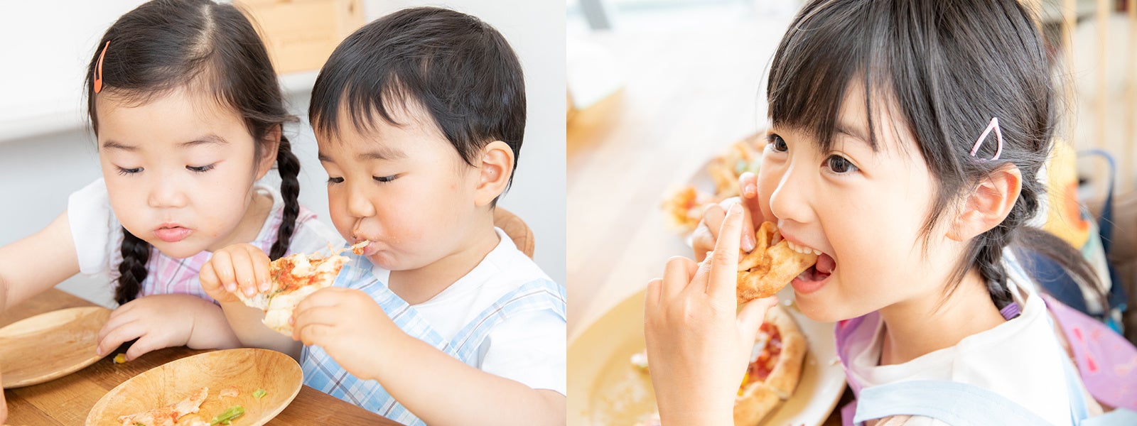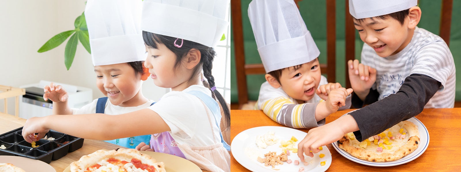 好きな具材を好きなようにトッピングして、その子オリジナルの特別ピザの完成!