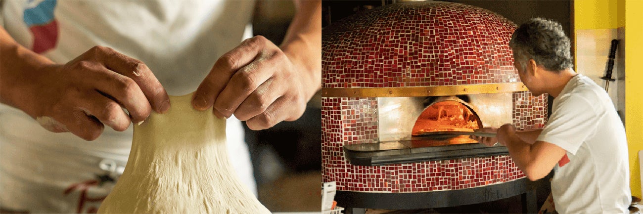 もはやナポリのピザ生地は小麦の豊かな香りと、薪窯で仕上げたカリカリもちもちな食感が特徴です。そしてその生地の上に乗せる素材にもこだわりを持ち、毎月新しいメニューを開発、販売しています。