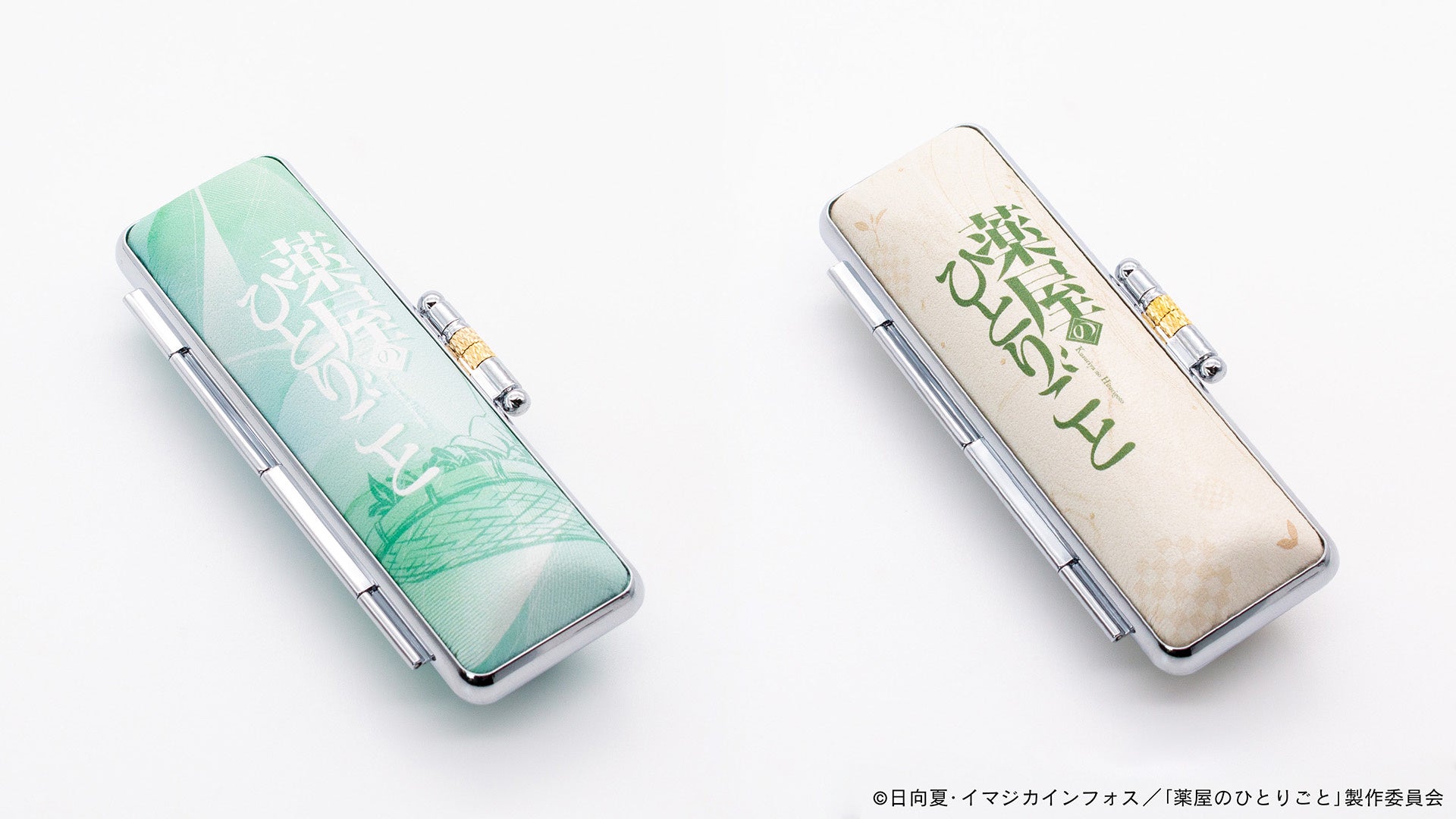 印面には6文字まで自分の好きな文字を名入れすることができ、ご自分の名前やキャラクターに合わせた文字、例えばキャラクター名やセリフを入れることも可能となっており、自分だけのオリジナルグッズにカスタムできることも魅力のひとつです。また、同時発売となる印鑑ケースの「翠」と「茅」の2種類も、作品をイメージしたデザインとなっており、普段使いもできる商品となっております。