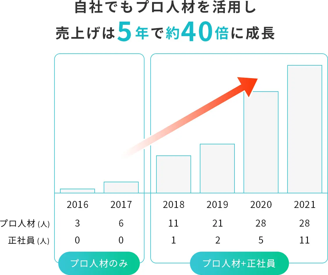 資金調達により、既存事業の拡大および新規事業の創出にさらに取り組んで参ります。単なるプロ人材の紹介にとどまらず、個人と企業に挑戦の機会を増やし、企業の課題を解決するインフラとなれるよう邁進いたします。