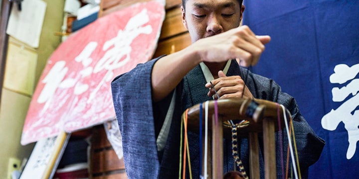 1963 年に創業以来、組紐にあった糸づくり、染色・デザイン・組みまでを一貫して行う都内で唯一の工房。伝統的な組紐だけでなく、先代から受け継がれてきた技術とノウハウから組紐を進化させ、2019 年に日本で開催されたラグビーワールドカップでは、メダルリボン・参加記念敷布を、耐久性と伸縮性を重視した純国産シルクの組布で製作した。