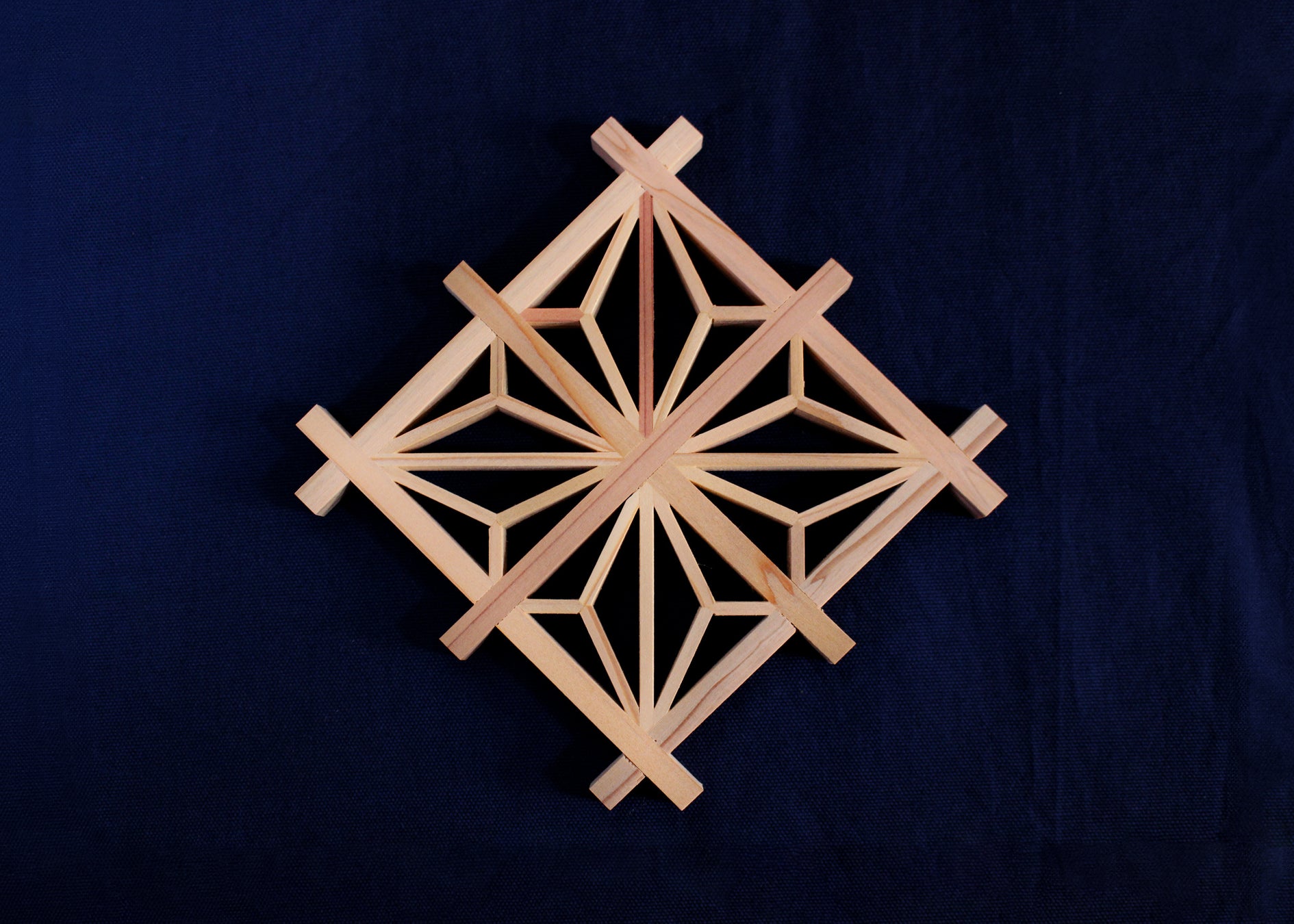 江戸組子 建松(えどくみこ・たてまつ) 1982 年、江戸川区にて創業。「組子細工」の端緒は、平安時代に生まれた日本建築の建具であり、 釘を一切使うことなく、小さな木片を手作業で組み合わせてさまざまな模様を編み出すことが できる。伝統的な組子細工の模様は、桜や麻の葉、雪など日本の自然をモチーフにしたものが 多く、豊作や長寿など人々の願いが込められている。