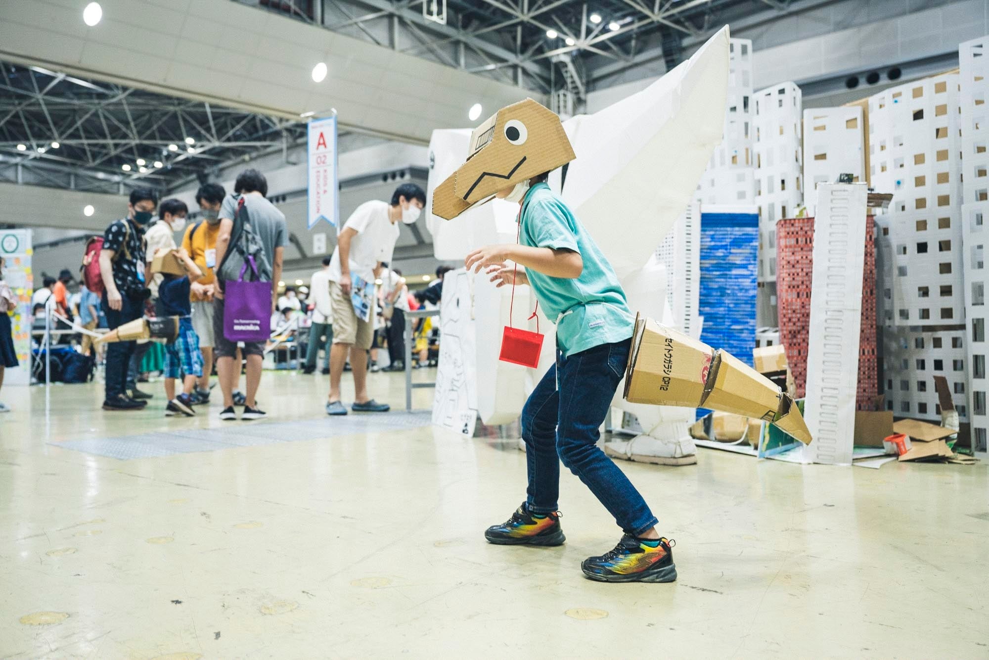 ② なりきりティラノ 動く尻尾と帽子を着けてダンボールパレードに参加しよう!