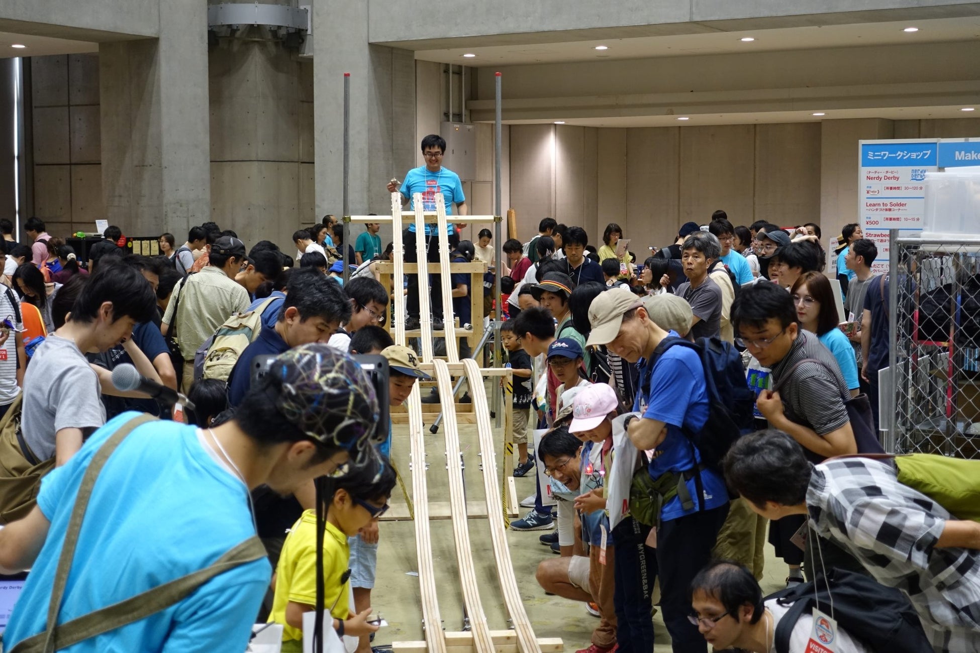 たくさんの子どもたちが熱中し、それぞれ工夫を凝らしたミニチュアカーで熱いレースを繰り広げた “Nerdy Derby” が、4年ぶりにMaker Faire Tokyoに帰ってきます! Nerdy Derbyは、ニューヨークからやってきた「ルール無用」の ミニチュアカーレース大会。大人も子どもも、参加すればひとりのレーサー。ほんの少しの気づきや工夫がレースの 勝敗を分けます。テストコースや本番コースでうまくいかなくても、すぐに工房で改良してまたトライ!