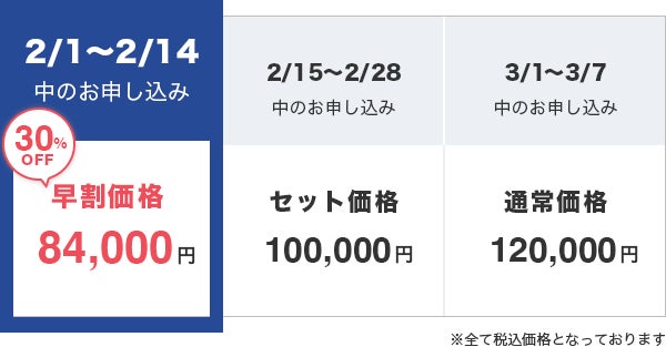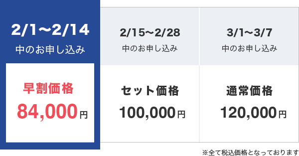 ※早割・セット価格期間終了後のお申し込みについては、通常価格でのみのご案内となります。ご了承下さいませ。