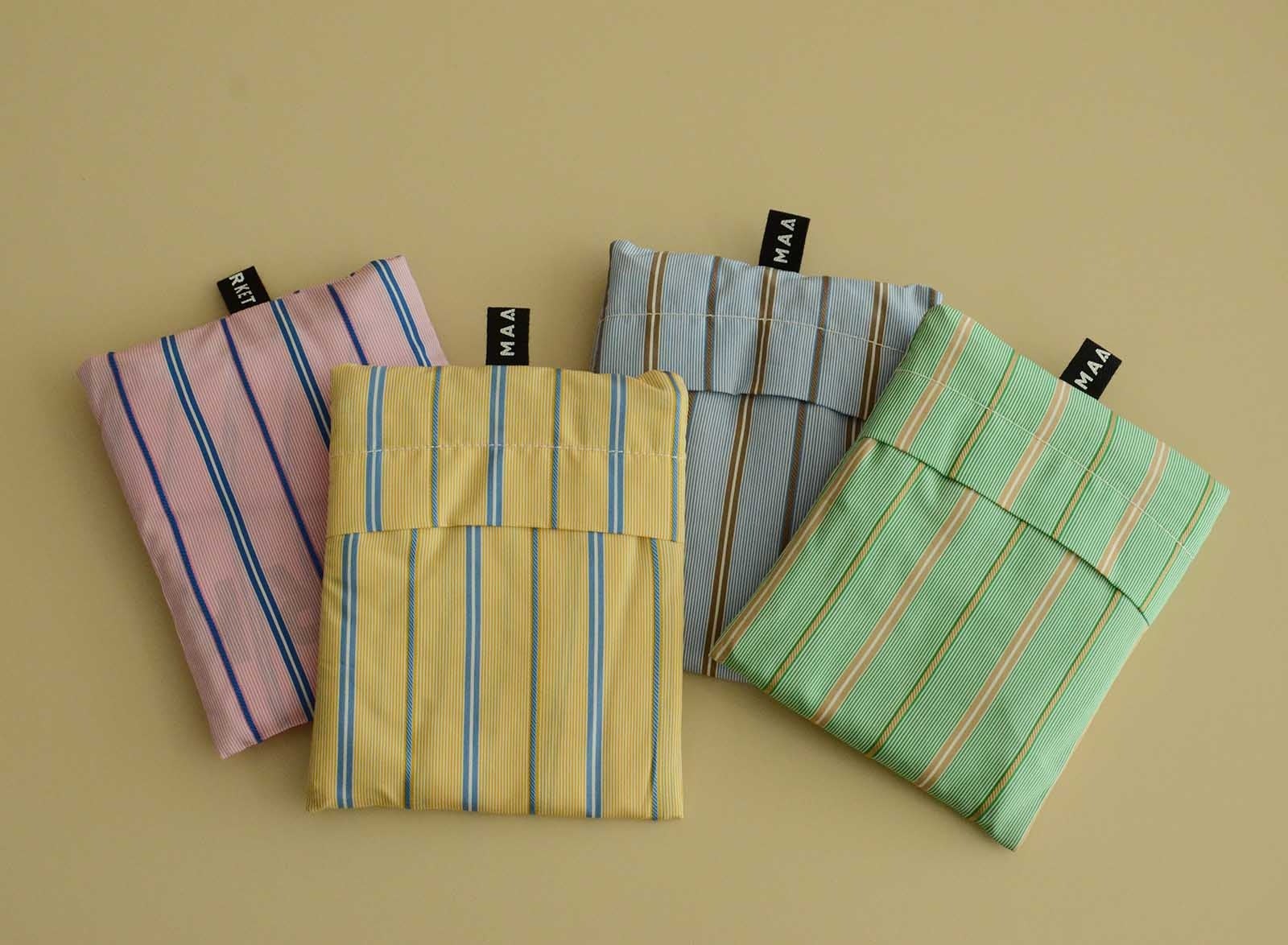 パッカブルタイプのエコバッグで、持ち運びも便利、日々のショッピングに活躍してくれそうなデザインです。色はグリーン、ブルー、ピンク、イエローの4カラー展開となっています。この機会に、ぜひ、春から新しいインテリアを取り入れて新生活をお楽しみください。