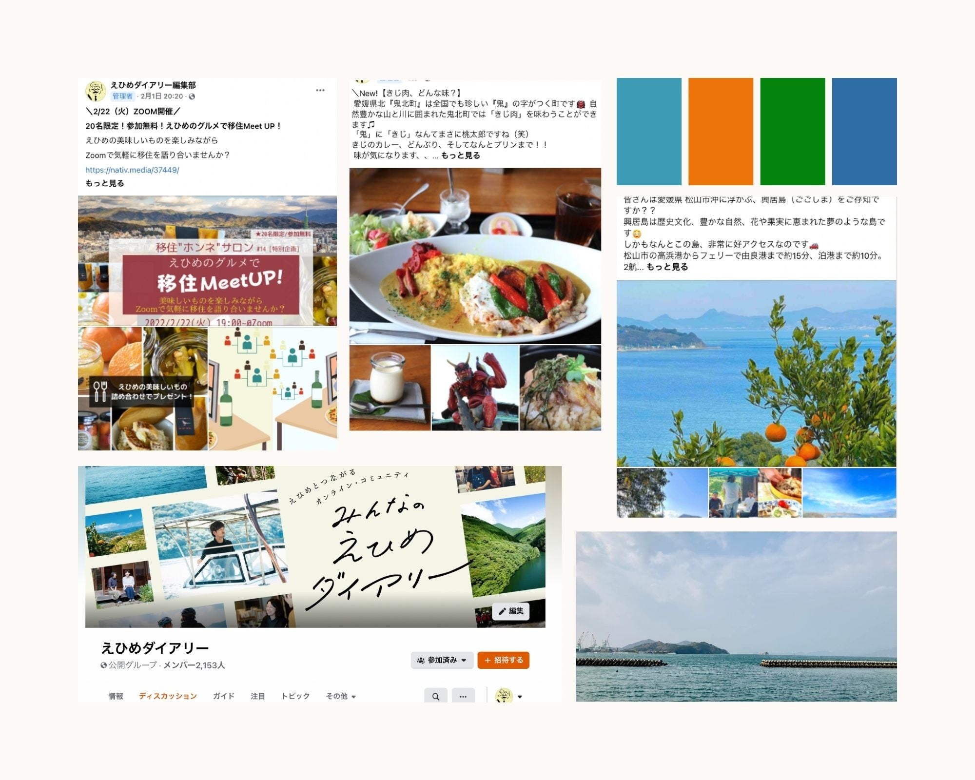 Facebookグループ「みんなのえひめダイアリー」で、愛媛に関する情報発信をしてくださる方を募集します。愛媛出身者、愛媛にIターン・Uターンをしたい人、愛媛で起業したい人など、愛媛に関わりを持ちたいけどこれまで機会がなかった人など、日本全国の愛媛ファンが対象です。