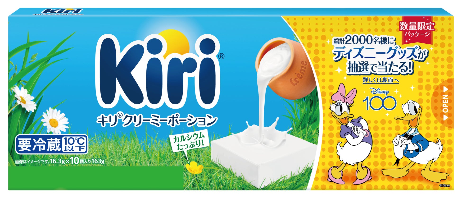 今年で日本発売40周年を迎えた「キリ」が、100周年を迎えた「ディズニー」の大人気キャラクターとともに期間限定のディズニーデザインパッケージとして登場します。豊かな自然の中で育てられた牛から採れる新鮮なミルクと生クリームの厳選素材から生まれた「キリ」は、子供から大人まで多くの方々に親しまれています。