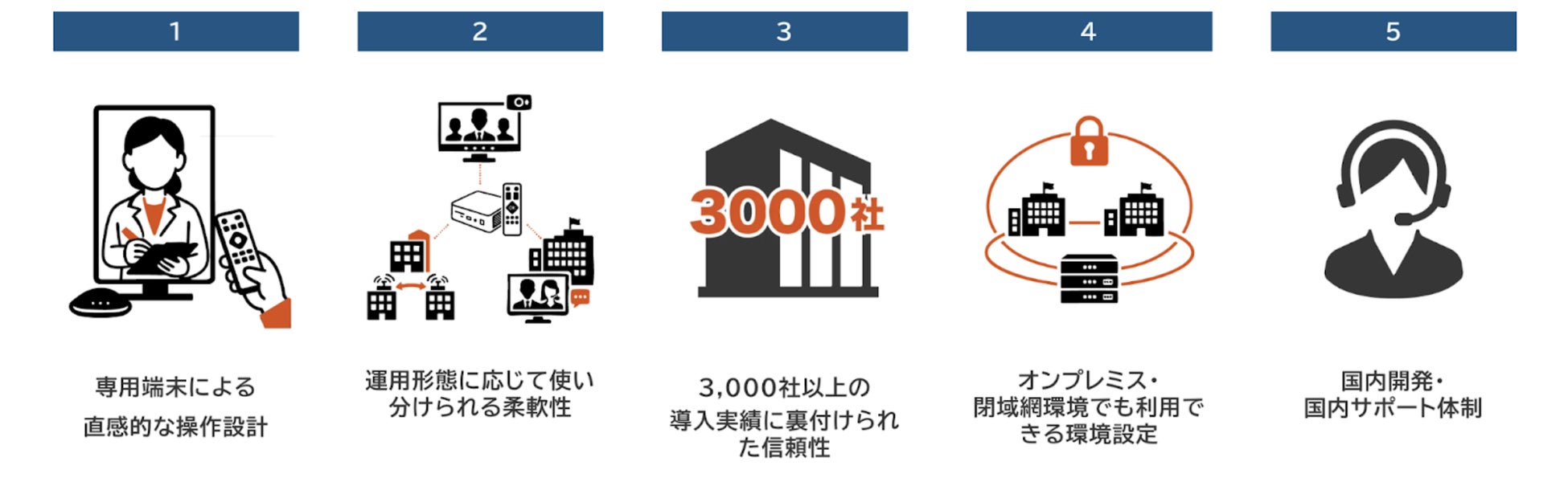 単なるテレビ会議ツールとしての利用にとどまらず、常時接続による「空間共有」、遠隔窓口、現場確認、拠点間の即時連携など、業務の流れを止めない独自の活用シーンを提供します。さらに、インターネットに依存しないオンプレミス環境や閉域網での運用にも対応。高いセキュリティと安定性が不可欠な自治体、金融機関、医療・教育現場などにおいて、対面以上のスピード感を持った対応を実現し、業務継続性の向上に貢献しています。