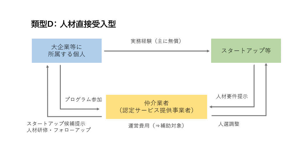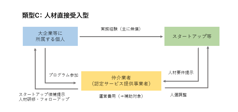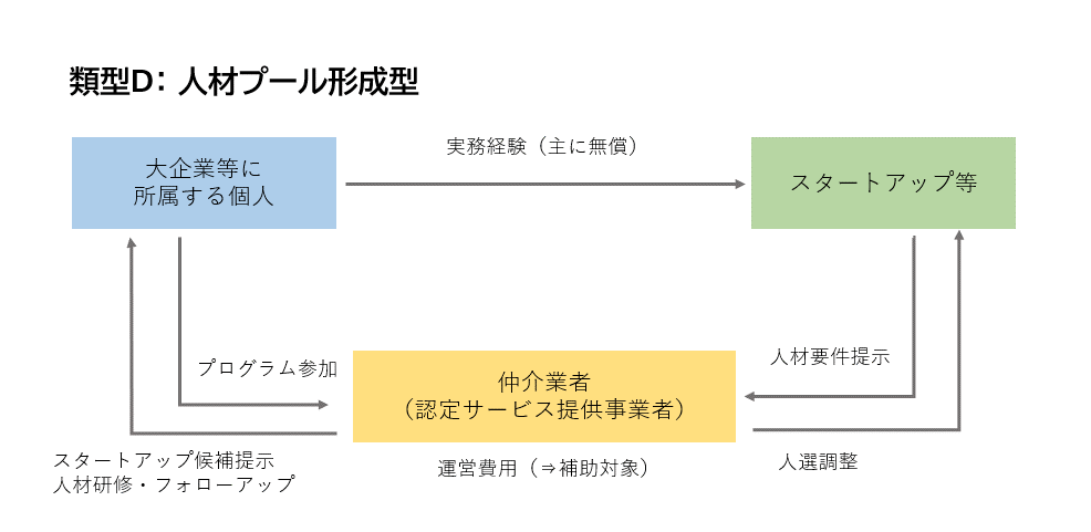 支援概要:認定サービス事業者が自ら費用を負担し、スタートアップチャレンジの場を提供する、あるいはスタートアップの成長に資する人材プールを形成する取り組み。