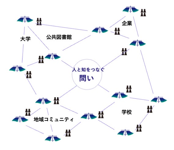 SNSなどのデジタルプラットフォーム上で対話をつなぐことで、場所や時間の制約や日常の範囲を超えて、お互いの問いやアウトプットが交わされ、新たな出会いや気づきが生み出される場を目指します。人と知がつながり、動き、成長していく様をイメージしています。