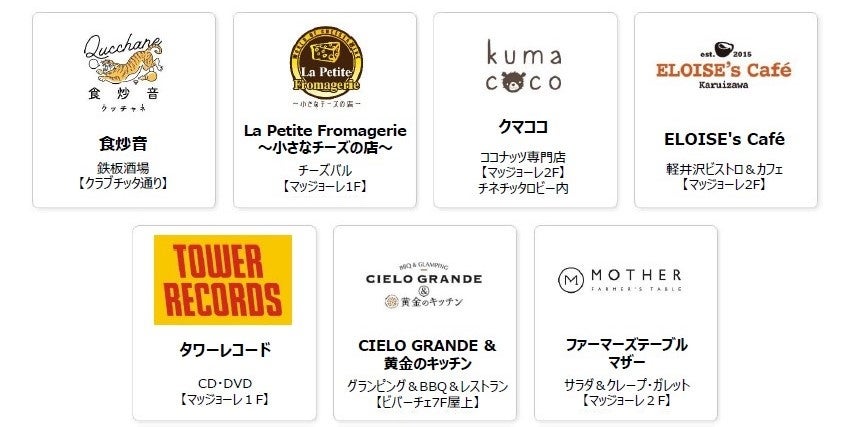 ラ チッタデッラ内飲食店、物販店、チネチッタ ※一部店舗除く