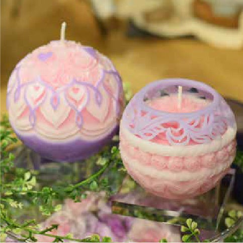 キャンドル表面にカービング(彫り)を施すことで、光の透過性・拡散性を高めている作品