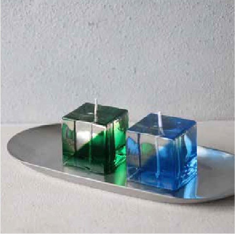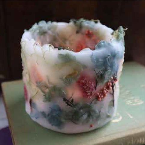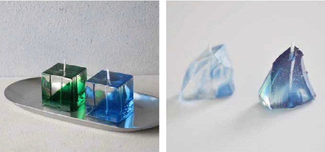 ホイッピングしたワックスを手で捏ねて造形し、火を灯した際の流ロウにも配慮した作品
