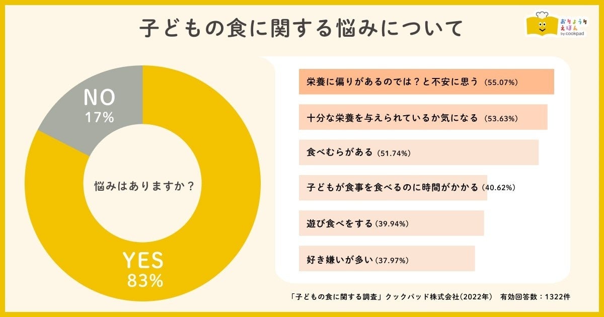 *2:1歳半から6歳までの子どもと同居しているクックパッドユーザーを対象に行ったアンケート調査( 調査期間2022年3月14日〜2022年3月16日、有効回答数1,322)