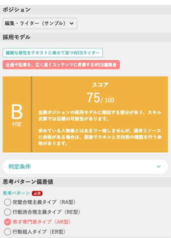 - 募集ポジションごとの、回答への評価基準設定サポート機能