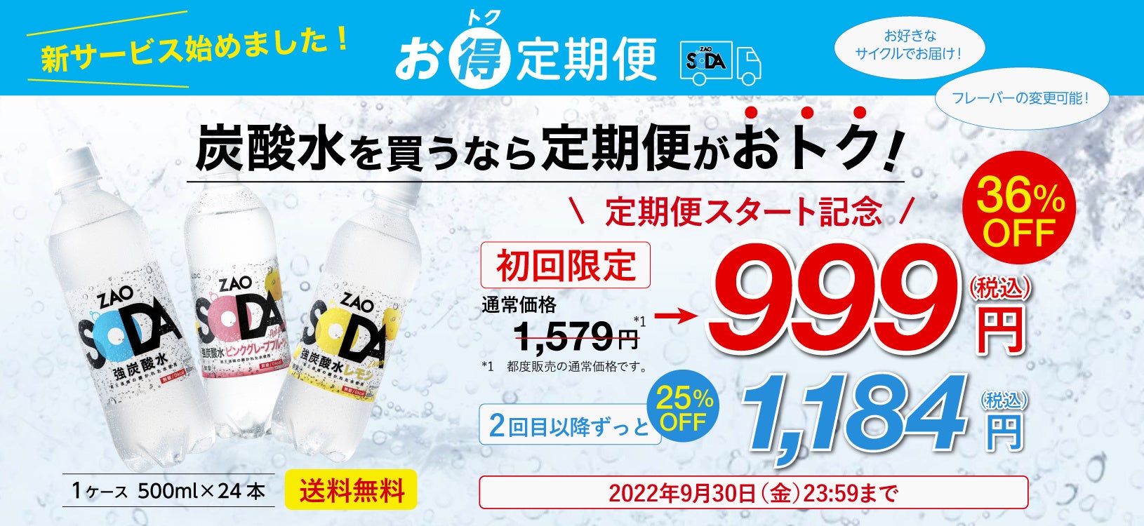 株式会社ライフドリンク カンパニー(本社:大阪府大阪市、代表取締役社長:岡野 邦昭)(以下「当社」)は、当社直営店舗「LIFEDRINKオンラインストア 本店」にて、人気の強炭酸水「ZAO SODA」シリーズの定期購入サービス「お得定期便」を2022年8月10日より開始いたしました。「お得定期便」は、お届けサイクルやお届け指定日をご自身のお好みに合わせてお選びいただけるなど、お得且つ便利なサービスとなっております。