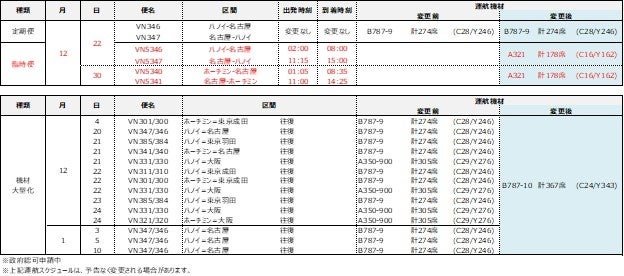 12月~2023年1月の一部フライト路線において日本発ベトナム行きの渡航需要回復に伴い機材大型化・臨時便の運航を決定しました。