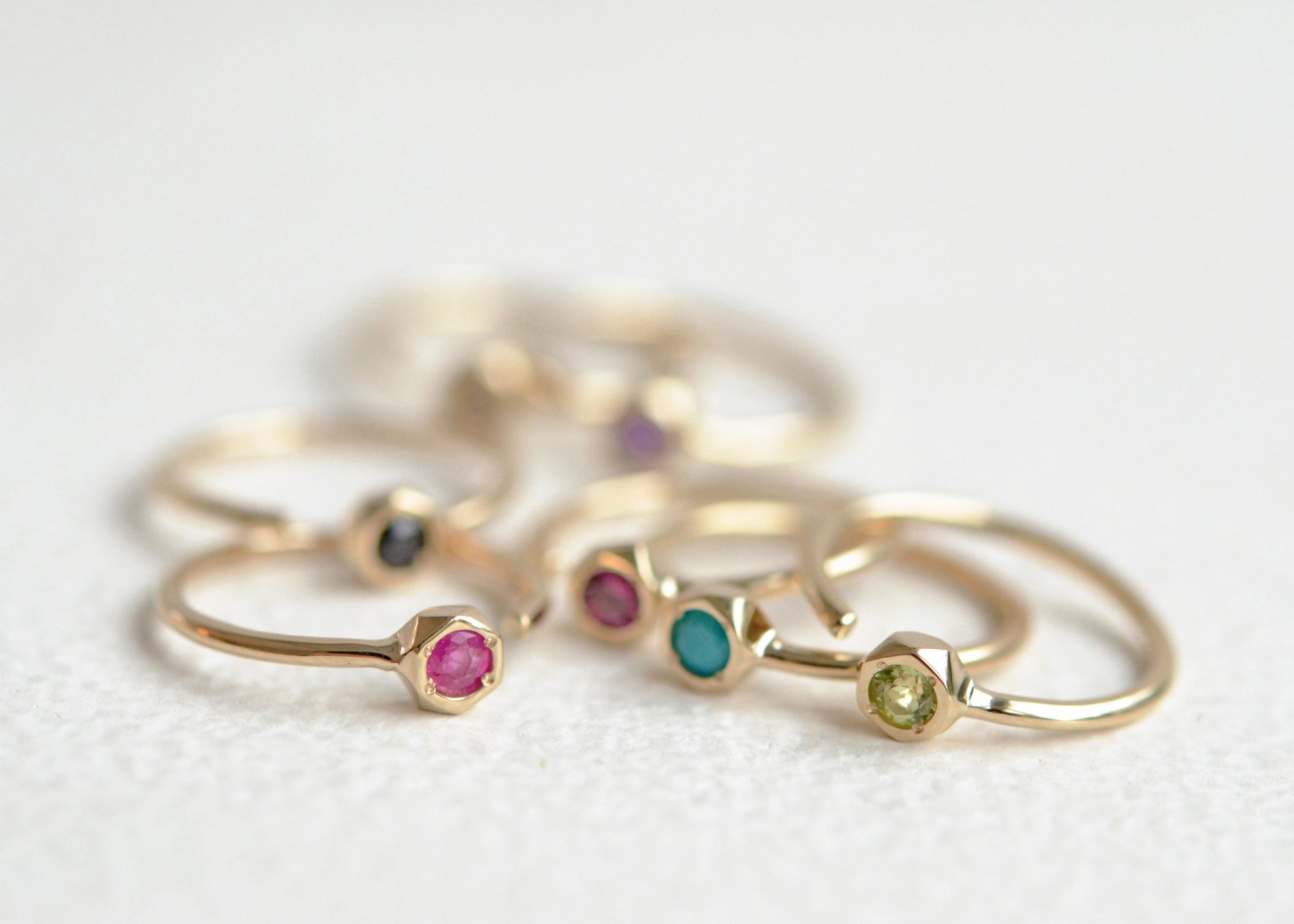 天然石は一点ごとに色味など表情が異なるため、自分だけの特別な指輪に出逢えるはず。