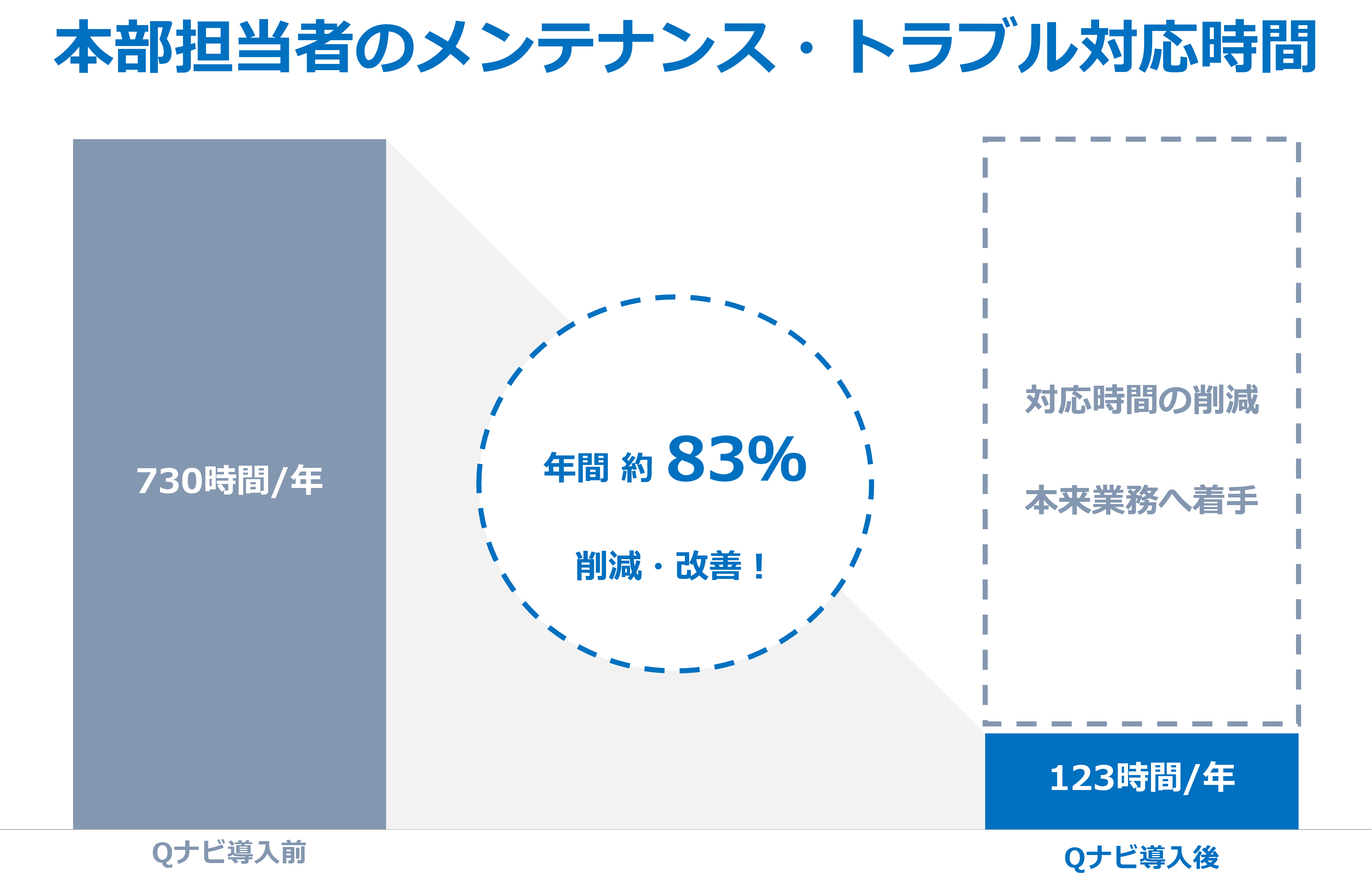 その他のメンテナンス業務に関しては、PC画面から直接入力することが可能になるため、Qナビの導入により、メンテナンス業務の一元管理が可能になり、支払いから手続きまで一気通貫で行うことができます。