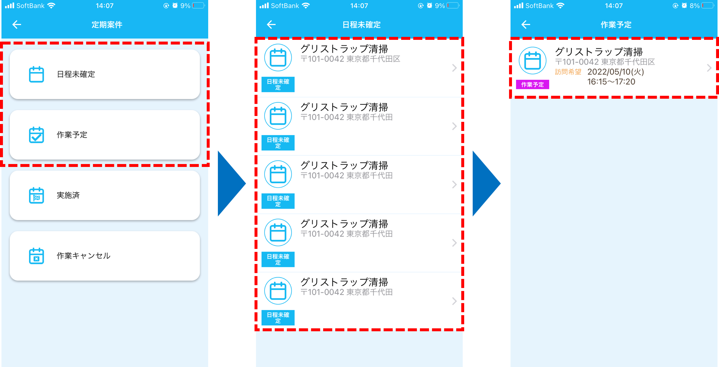 当社で実施する定期メンテナンスについては、Qナビアプリ上で自動反映される仕組みです。