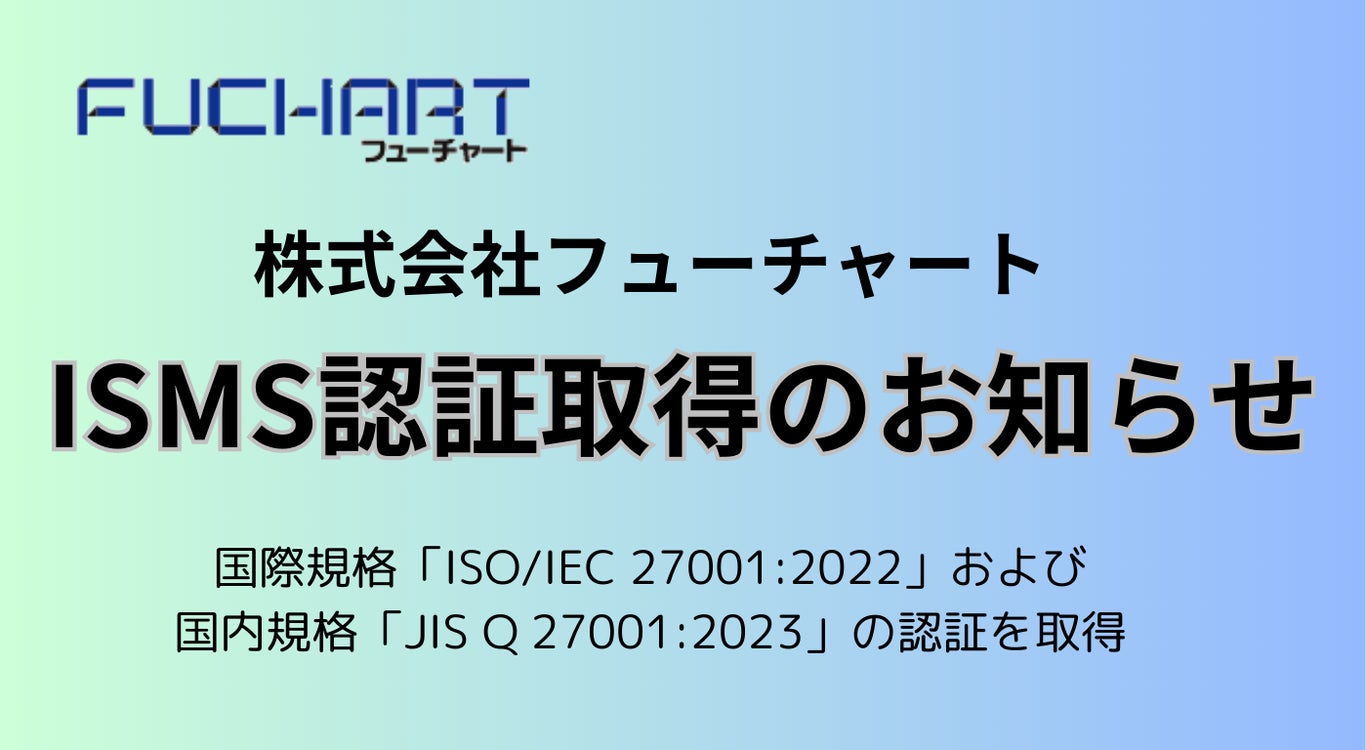 採用管理システムで人材採用業務の効率化を推進している株式会社フューチャート(本社:東京都中央区、代表取締役:今井 尚)は、2024年10月7日付で、情報セキュリティマネジメントシステム(ISMS)の国際規格「ISO/IEC 27001:2022」および国内規格「JIS Q 27001:2023」を取得したことをお知らせします。