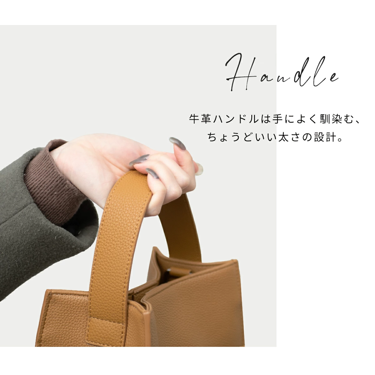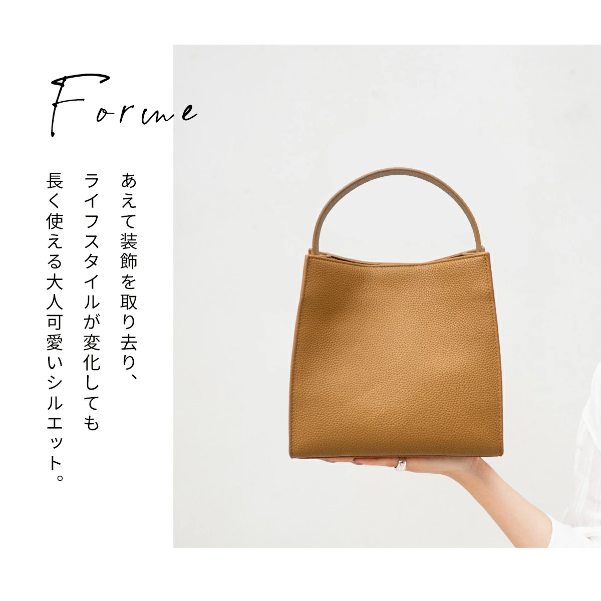 あえて装飾を取り去り、無駄をそぎ落として、ライフスタイルが変化しても長く使える大人シックで、マチが大きいコロンとしたシルエットを目指しました。見た目以上に収納が出来る便利さ、そして出し入れのしやすさもこだわっています。