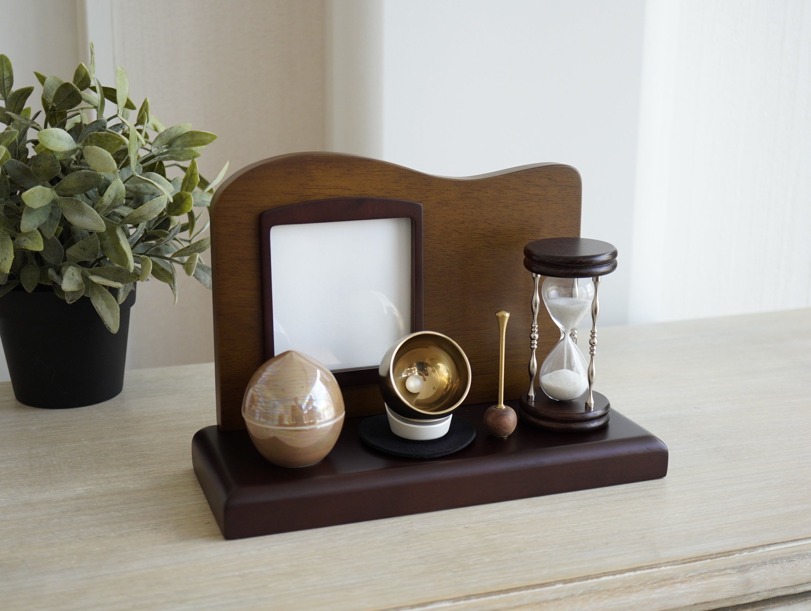 ・遺骨を特殊加工、ガラスビーズと混ぜ合わせることでサラサラの砂にし、砂時計型のオブジェに。