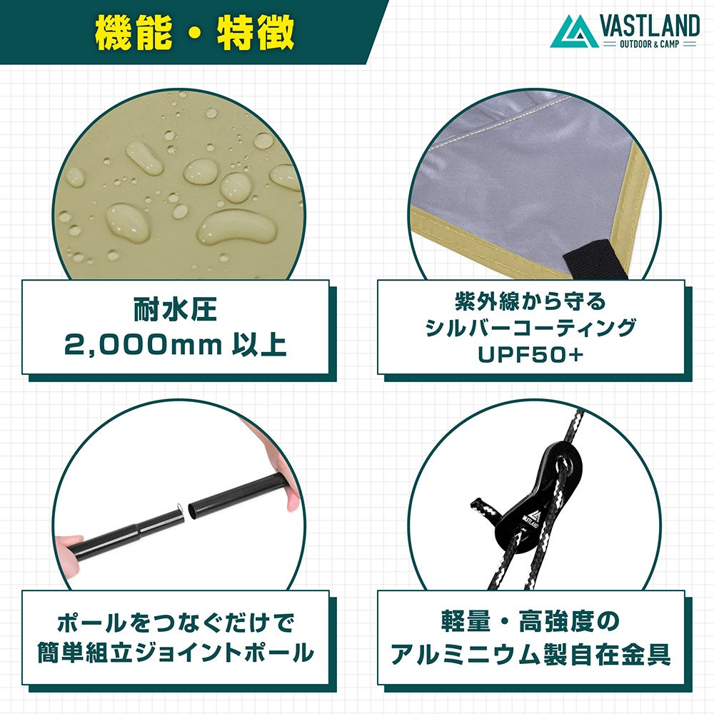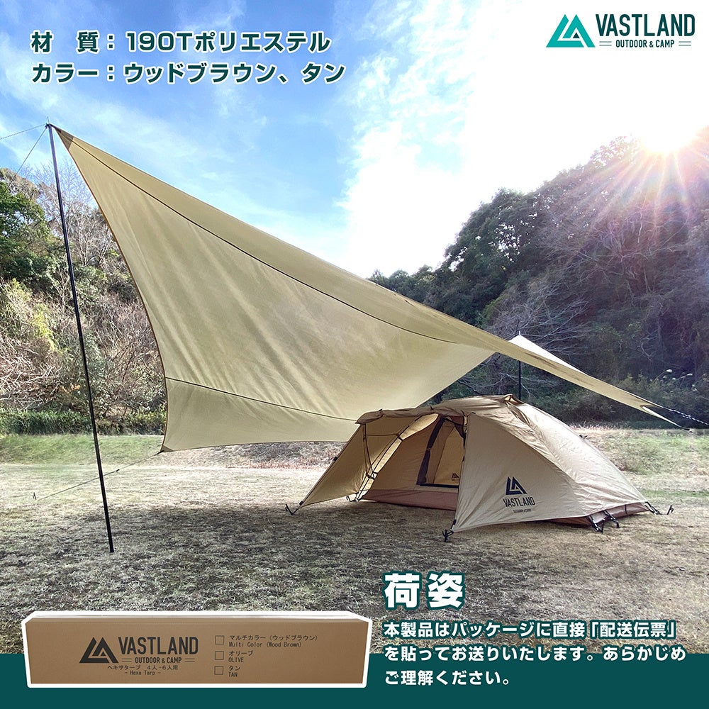 キャンプ・アウトドア用品ブランド「VASTLAND」、買い足さなくても設営可能な“オールインワンセットが特徴の「ヘキサタープ エントリーモデル オリーブ(新色)」を2022年7月9日(土)に発売