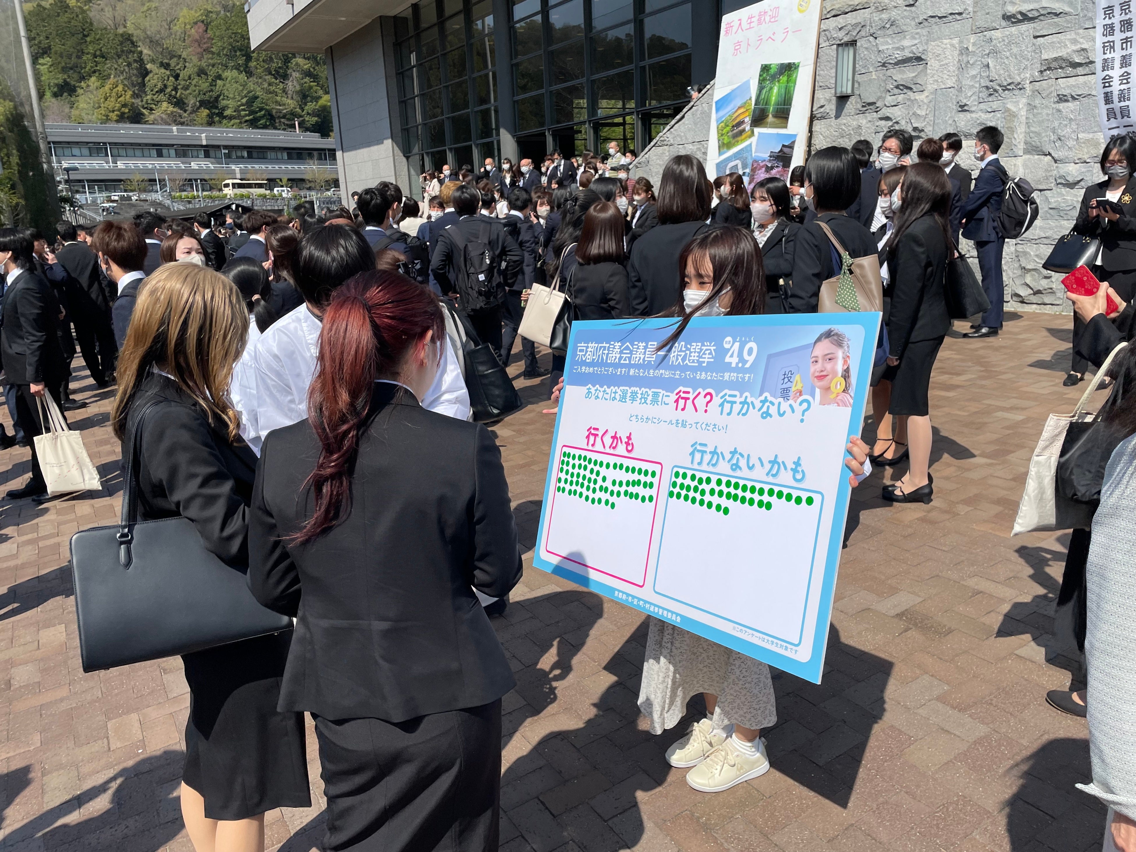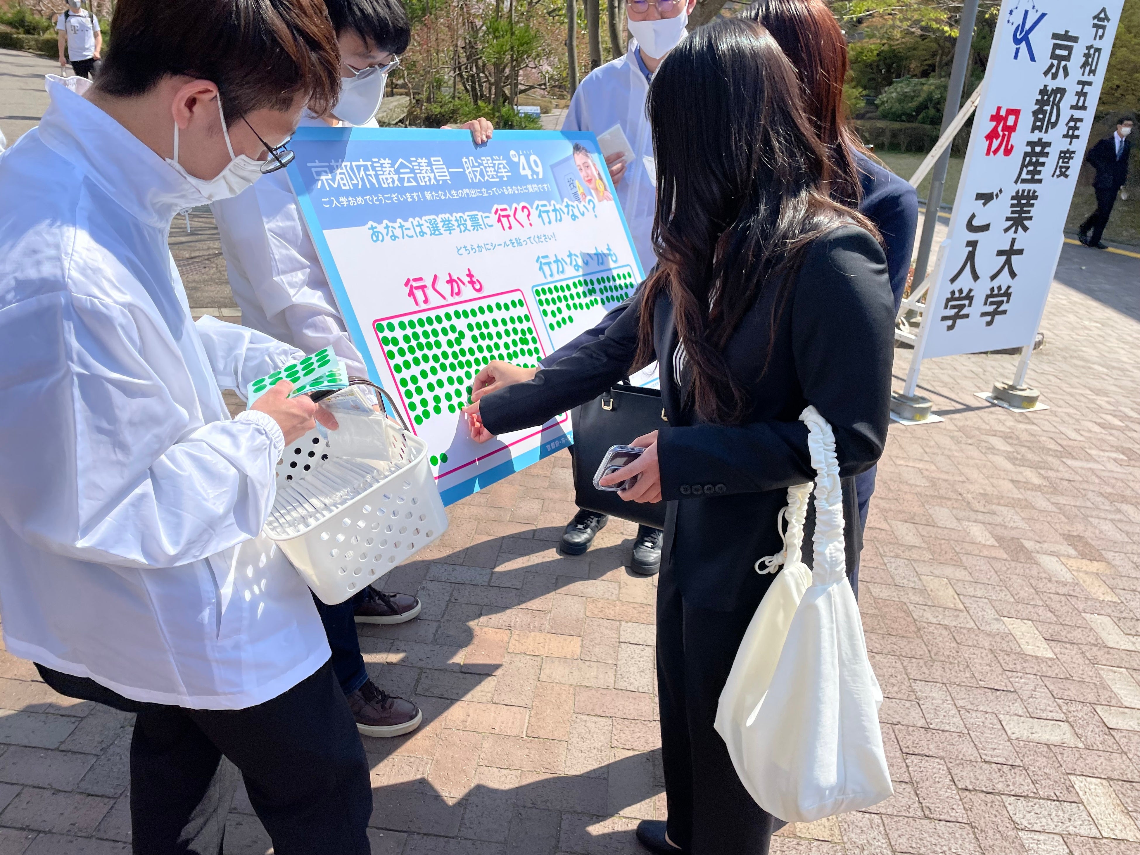 4月9日(日)に迫った京都府議会議員一般選挙へ向け、若年層へ選挙をより身近に感じてもらえるPRイベントを開催しました。
